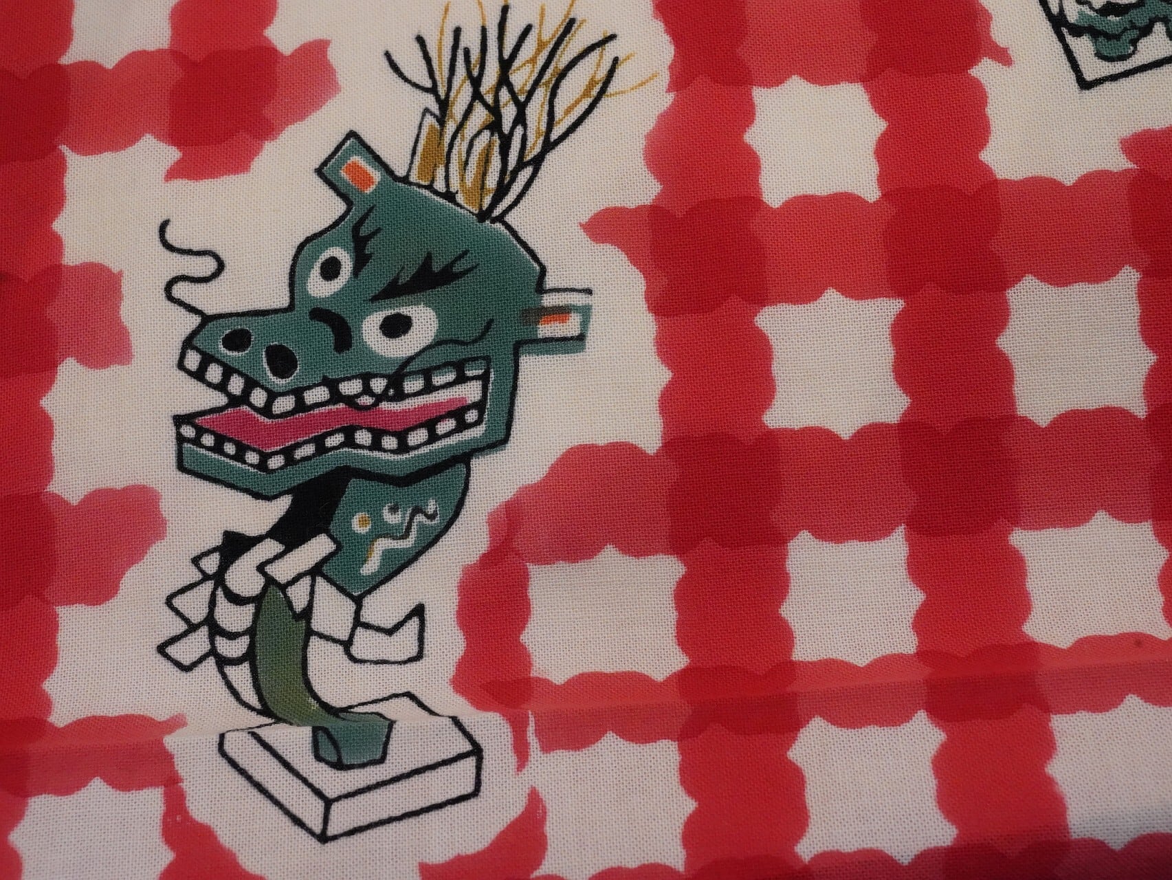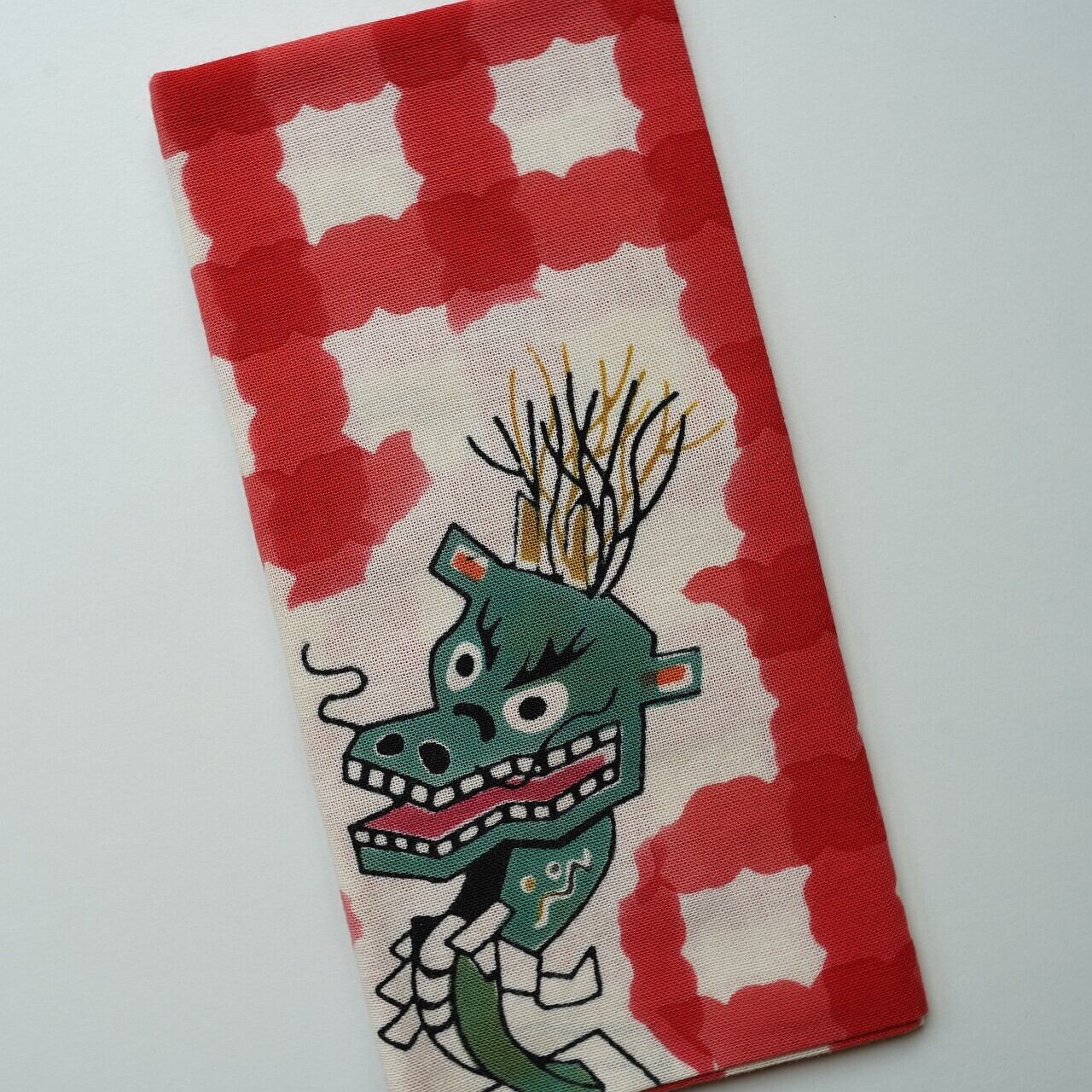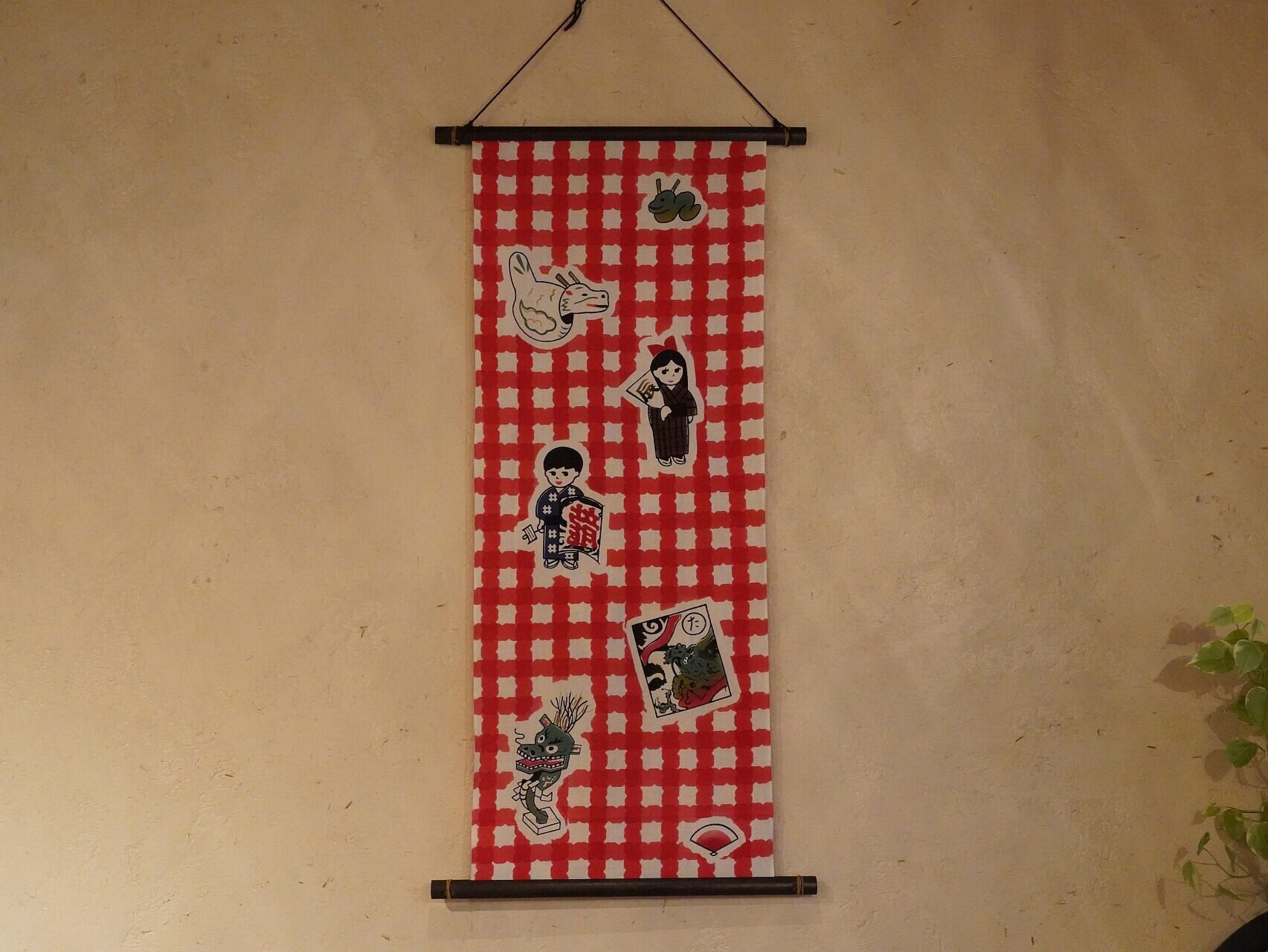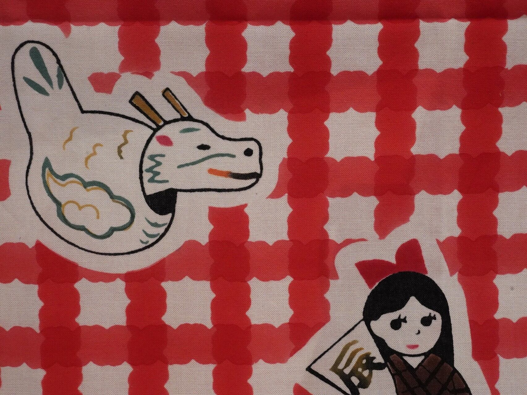 ■歌留多、張り子、凧上げ、羽子板、甲斐の福龍をモチーフにぬぐい。注染による二辺細川になります。
