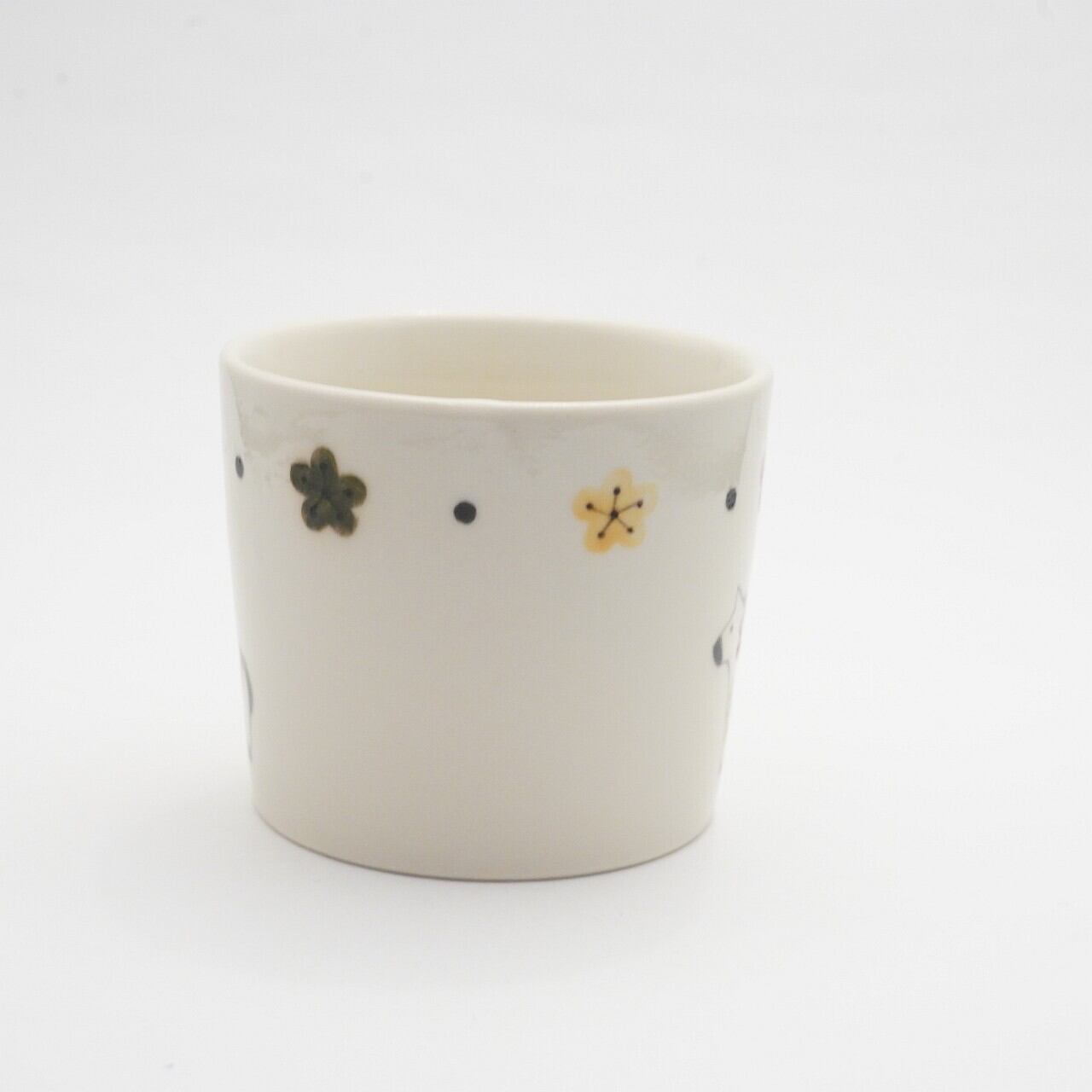 花や植物をデザイン化した模様をあしらったり、動物をかわいく絵付けしたうつわをメインに、使う方にとって、その時間が特別で素敵な時間になれたらと言う思いを込めて制作しています。