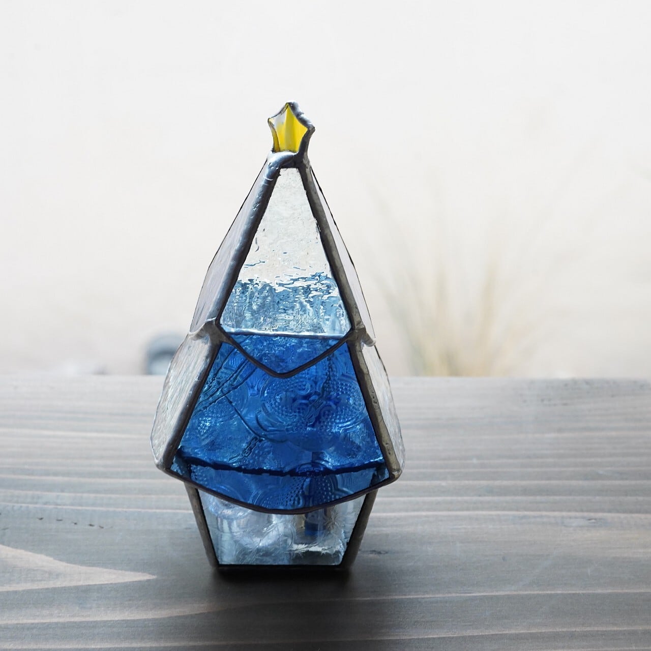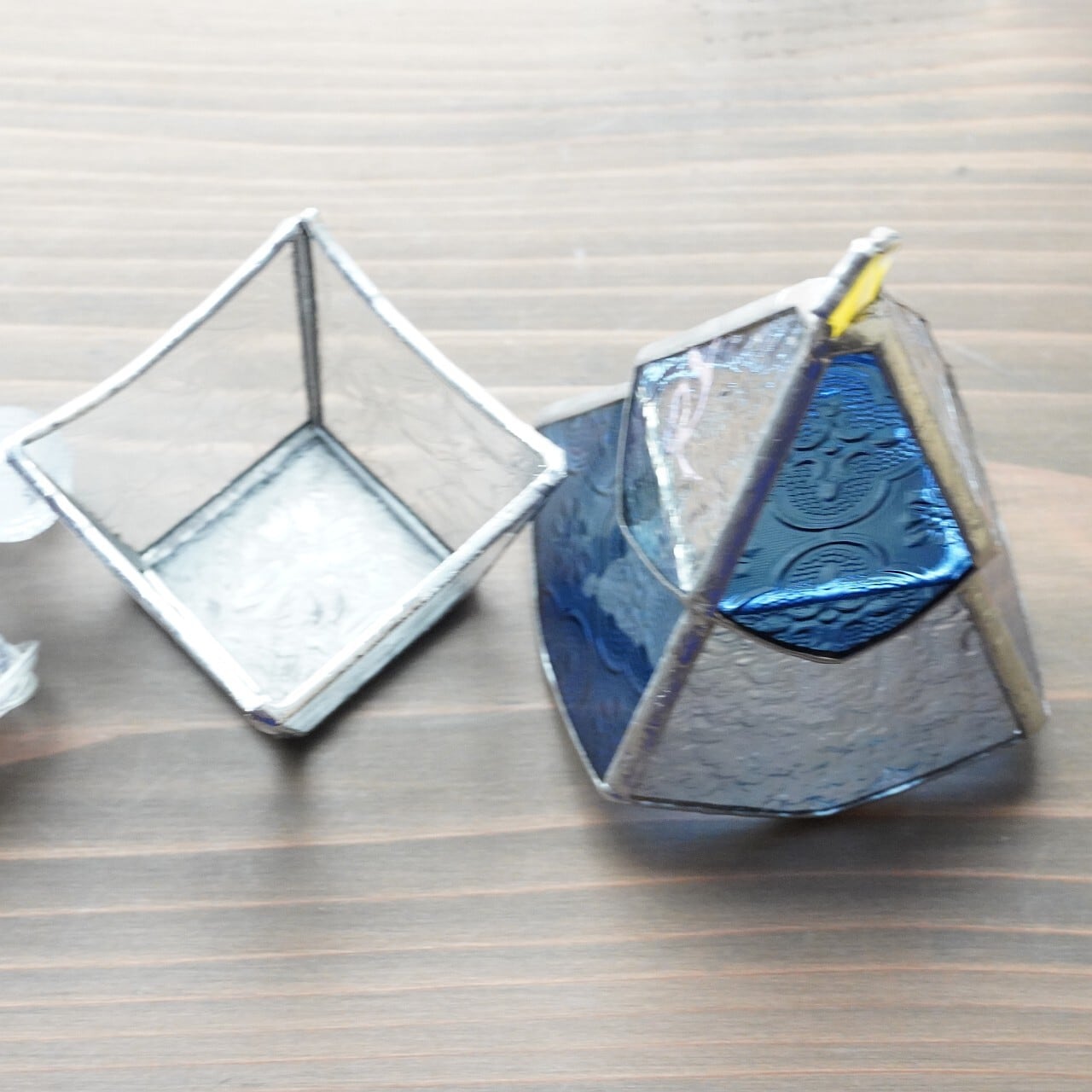 本体はステンドグラスの部分でライトの部分は作家の森中さんがサービスで付けくださっています。お好きなライトを入れて頂いたり、小物を入れてお楽しみください。