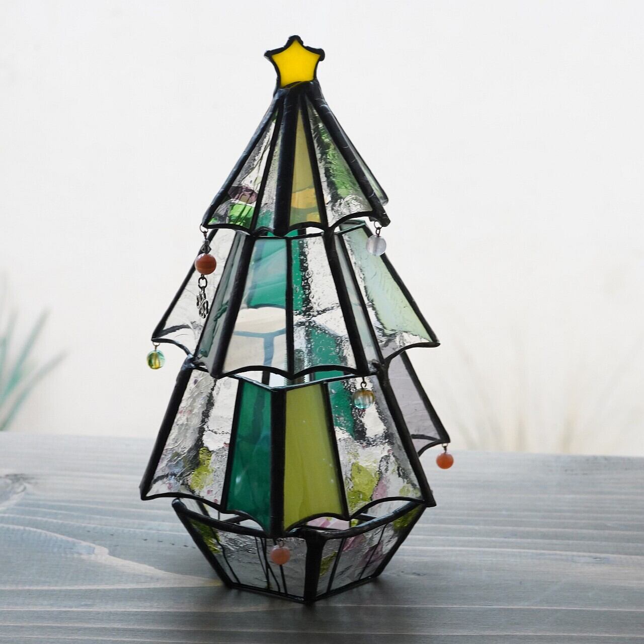 【森中 美佐江】ステンドグラスクリスマスツリー グリーン