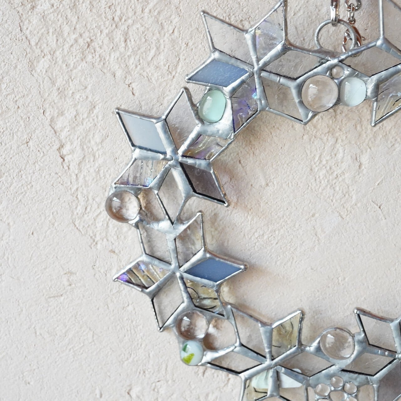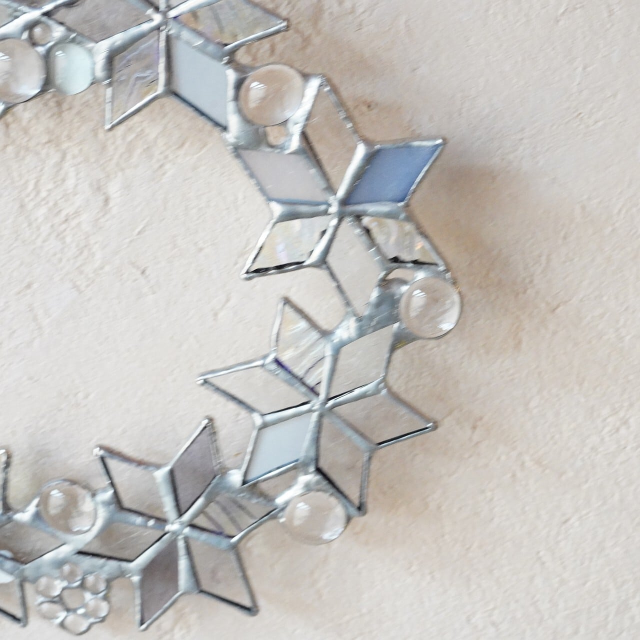 【森中 美佐江】ステンドグラスの雪の結晶リース