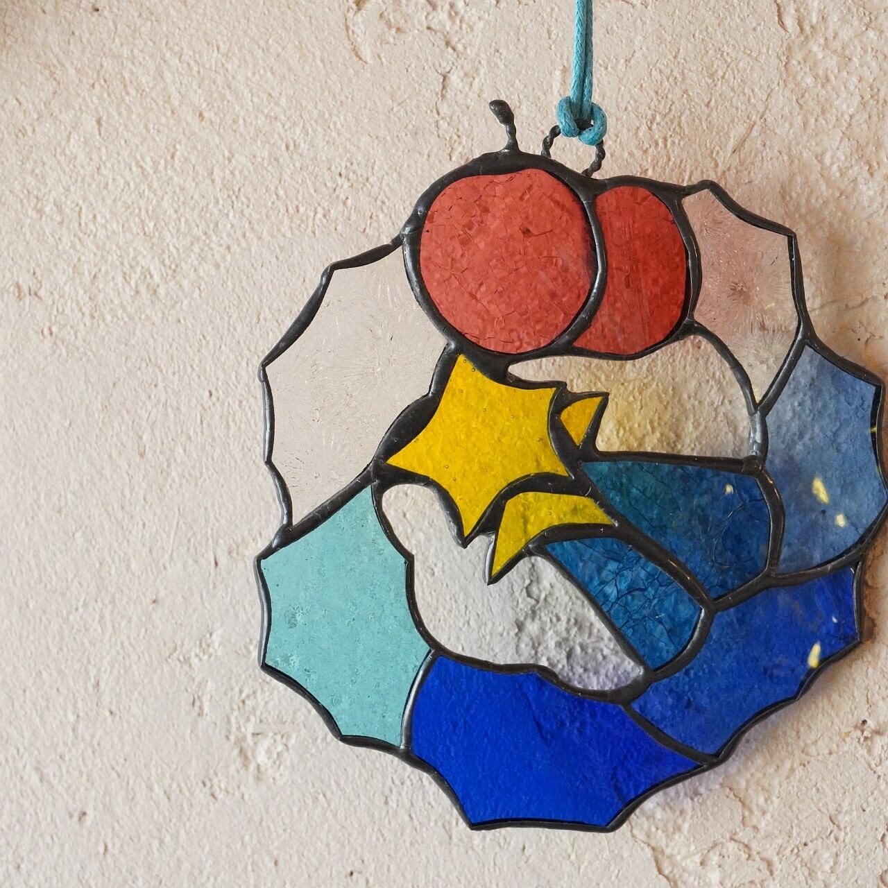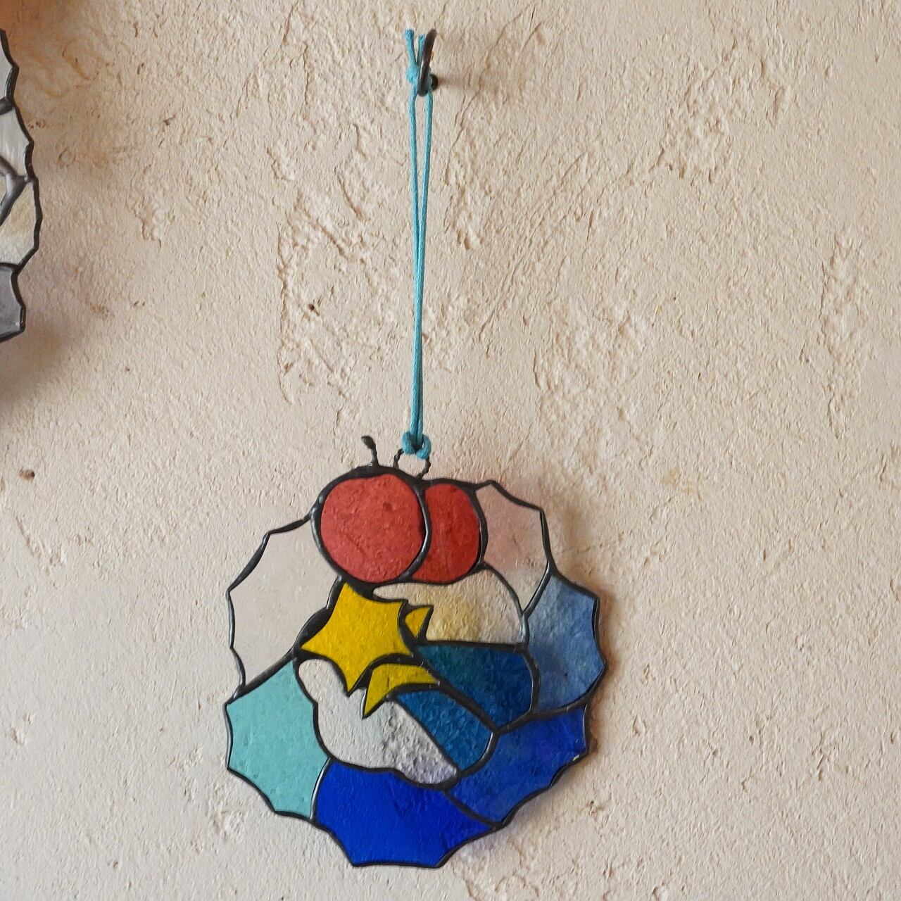 【森中 美佐江】ステンドグラスのミニリース 星とりんご
