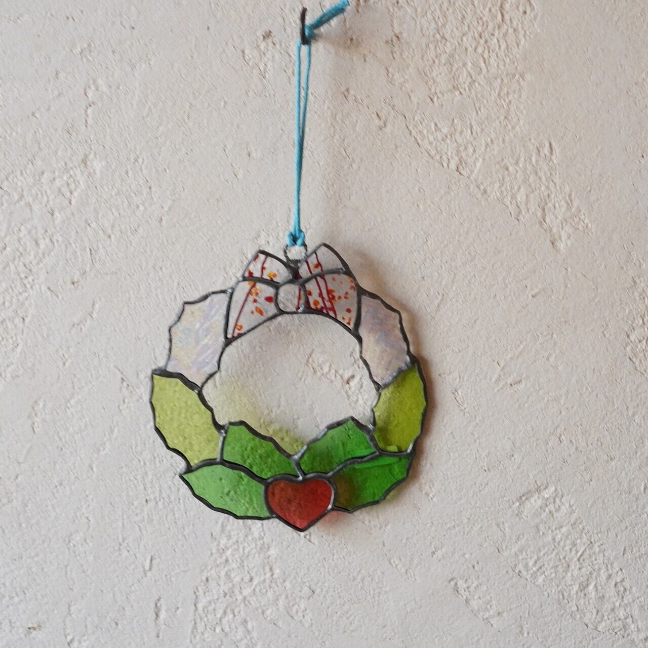 【森中 美佐江】ステンドグラスのミニリース ハートとリボン