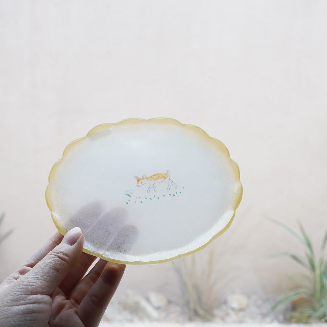 【松本みどり】花縁皿 こじかとお花 Ⅾ