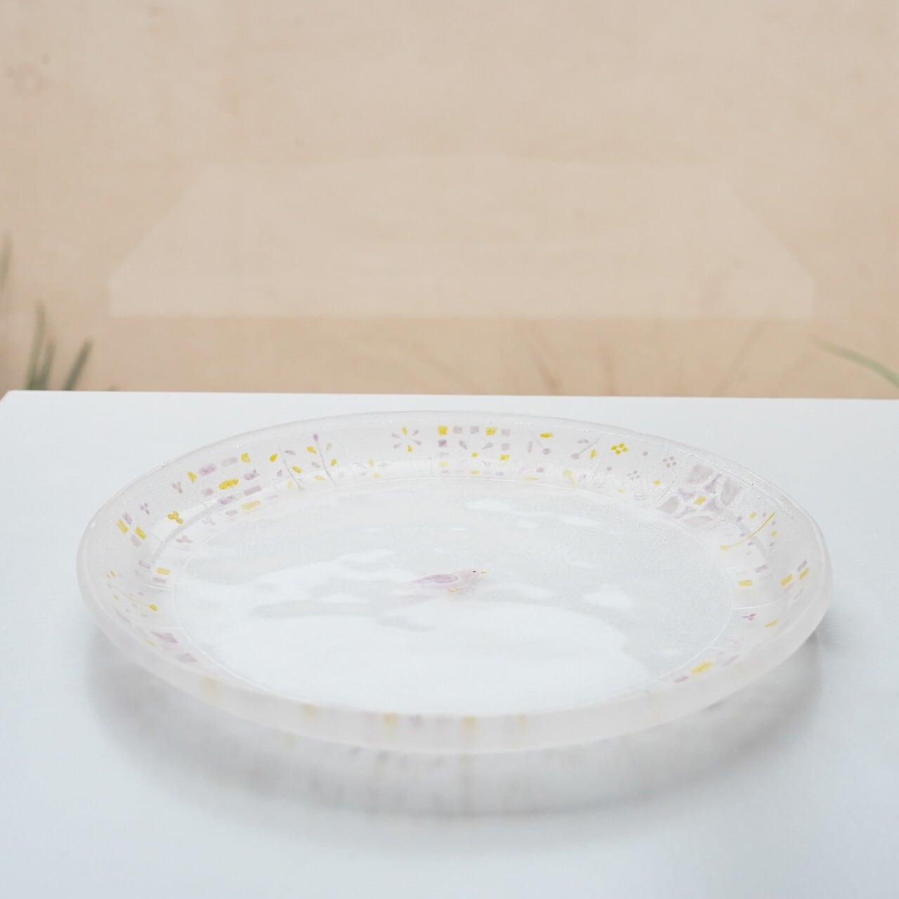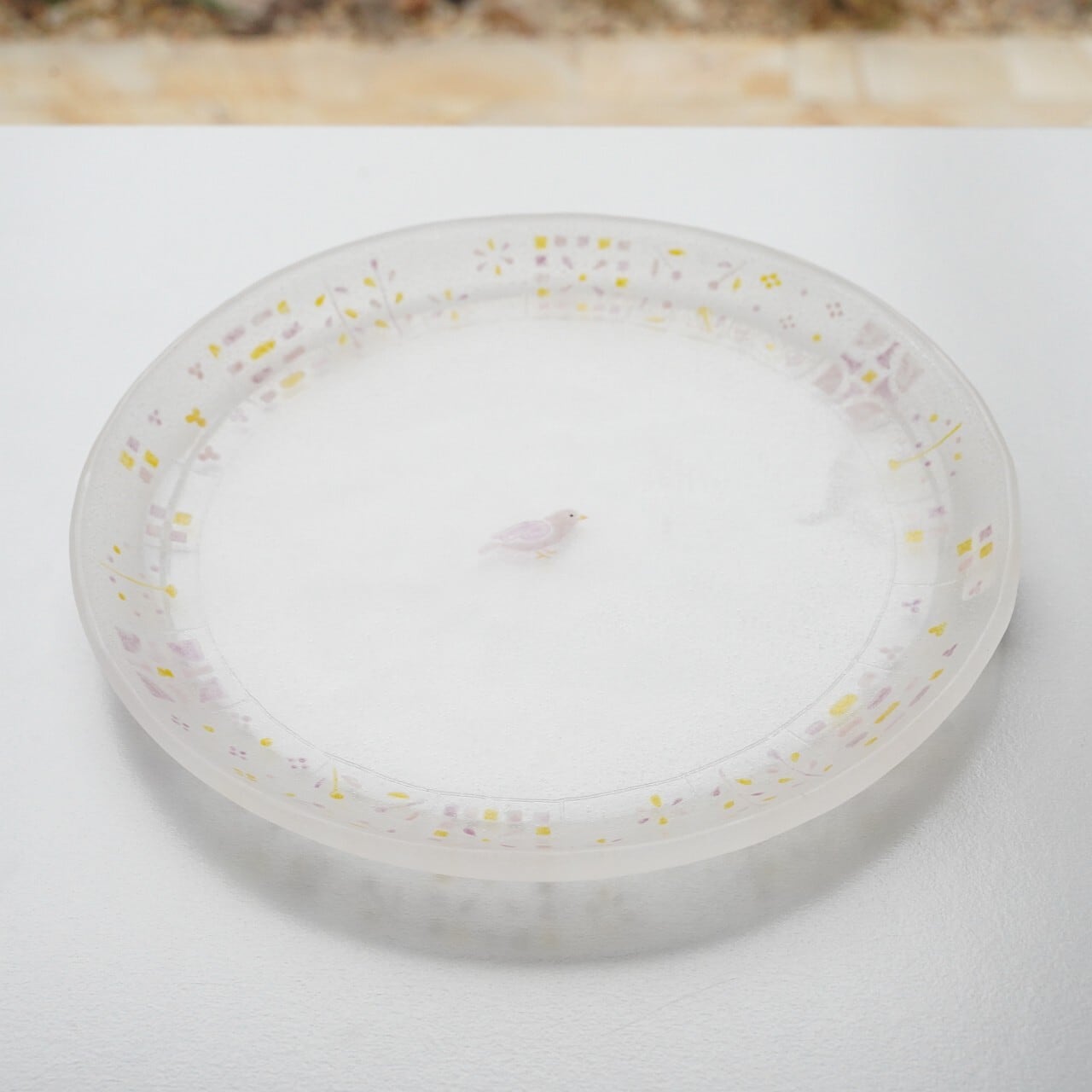 ・パートドヴェールはガラスのなかに気泡が含まれる技法です。ガラス表面にできた気泡によって小さな穴が開く場合がございます。大きな気泡ができた場合は経年劣化の少ない樹脂で穴を埋めております。