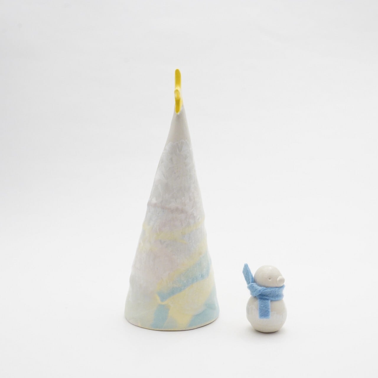【大雪窯 板東光太郎】雪結晶釉ツリー小 雪だるま付 B