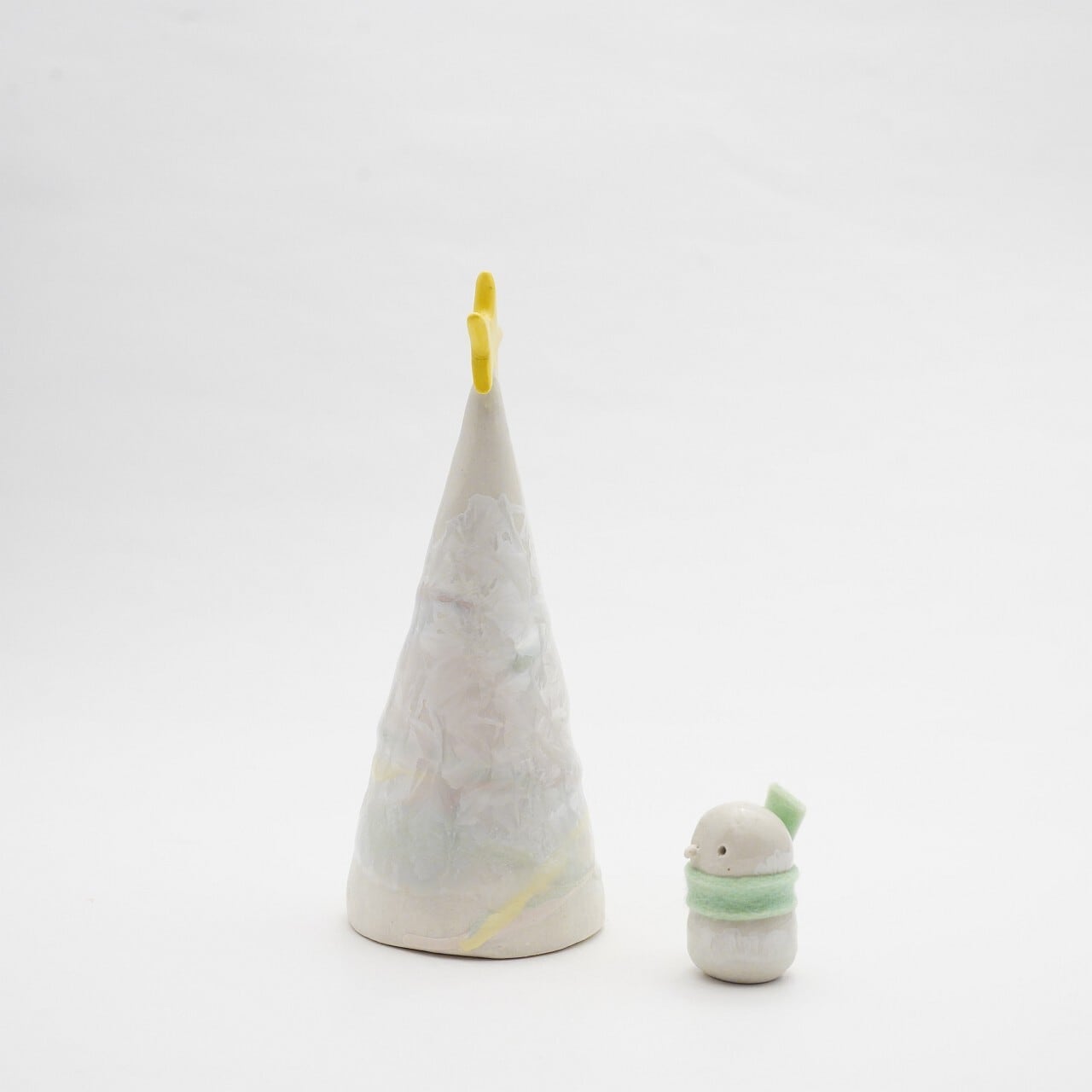 【大雪窯 板東光太郎】雪結晶釉ツリー小 雪だるま付 F