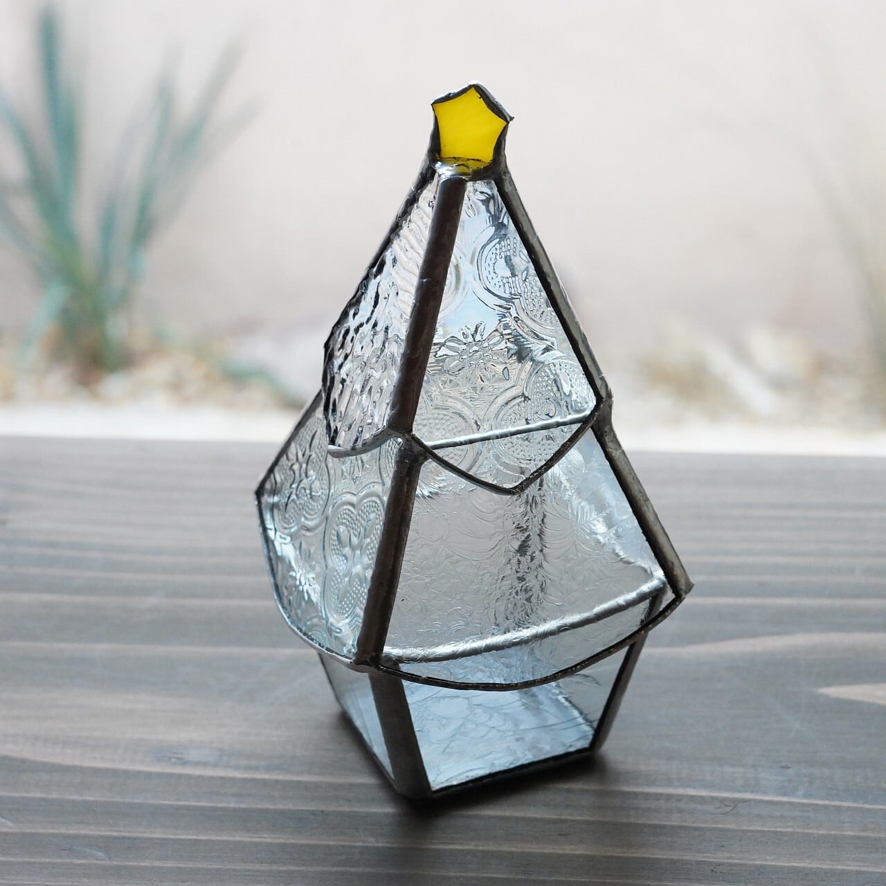 本体はステンドグラスの部分でライトの部分は作家の森中さんがサービスで付けくださっています。お好きなライトを入れて頂いたり、小物を入れてお楽しみください。