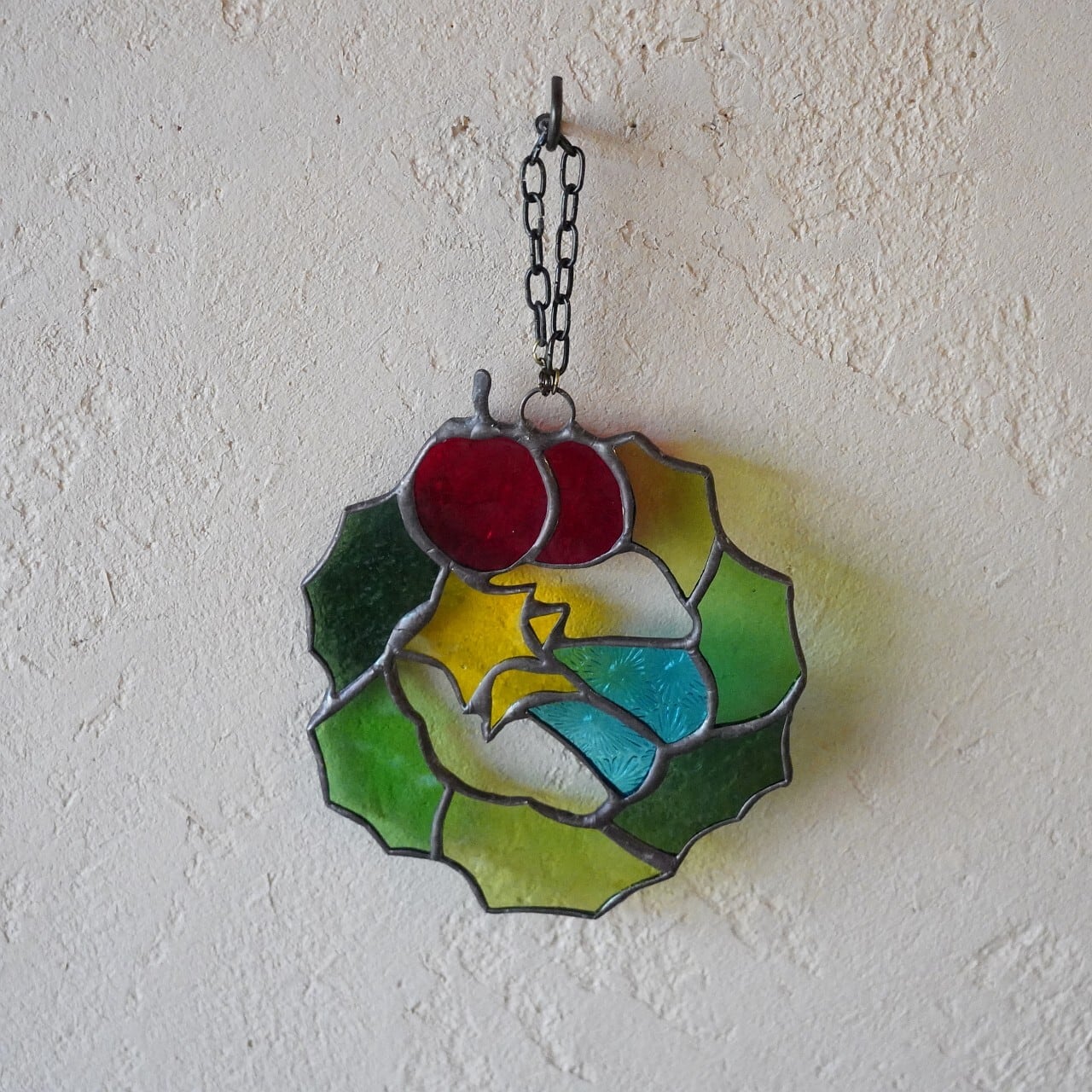 【森中 美佐江】ステンドグラスのミニリース 星とりんご