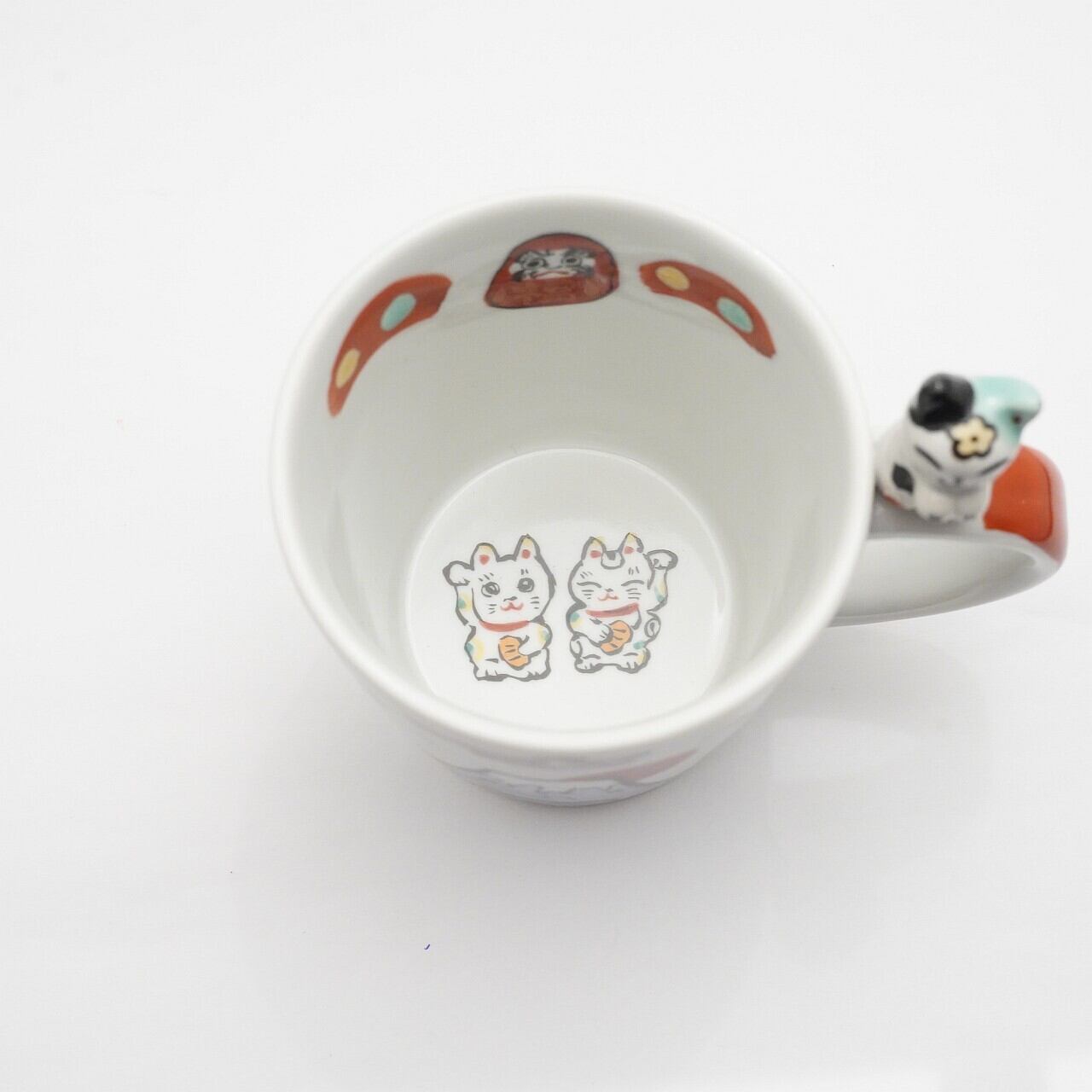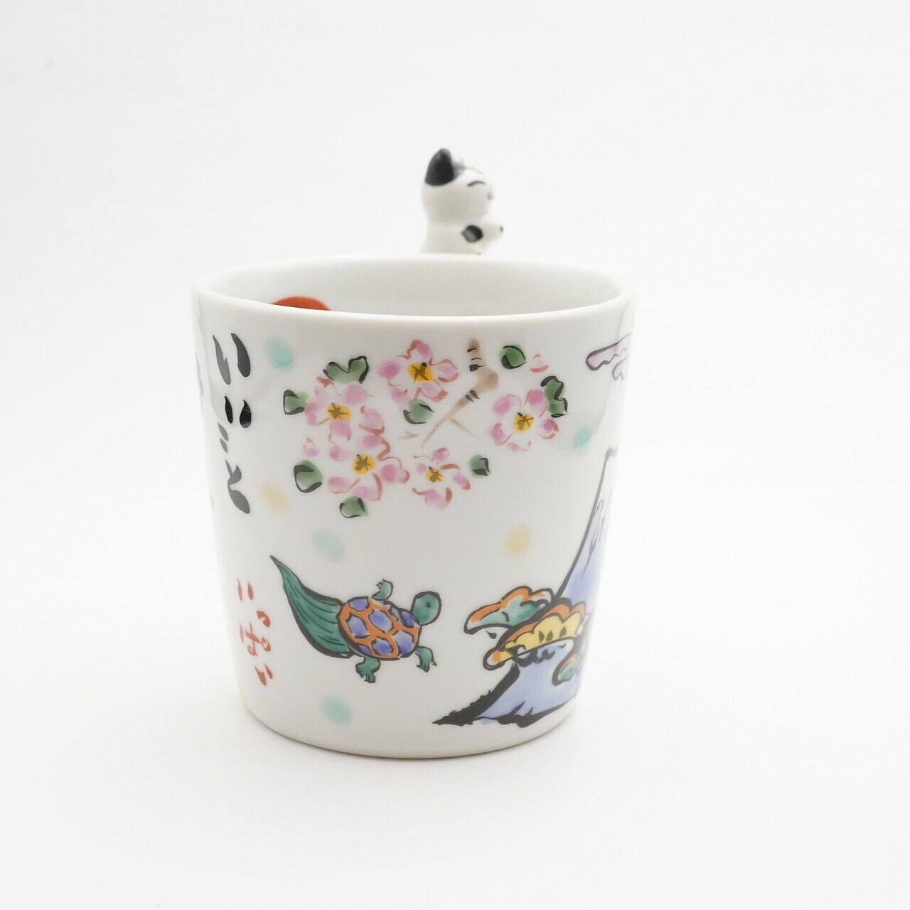 【夕立窯】富士めでたい三昧 ねこのっけマグカップ 1-B