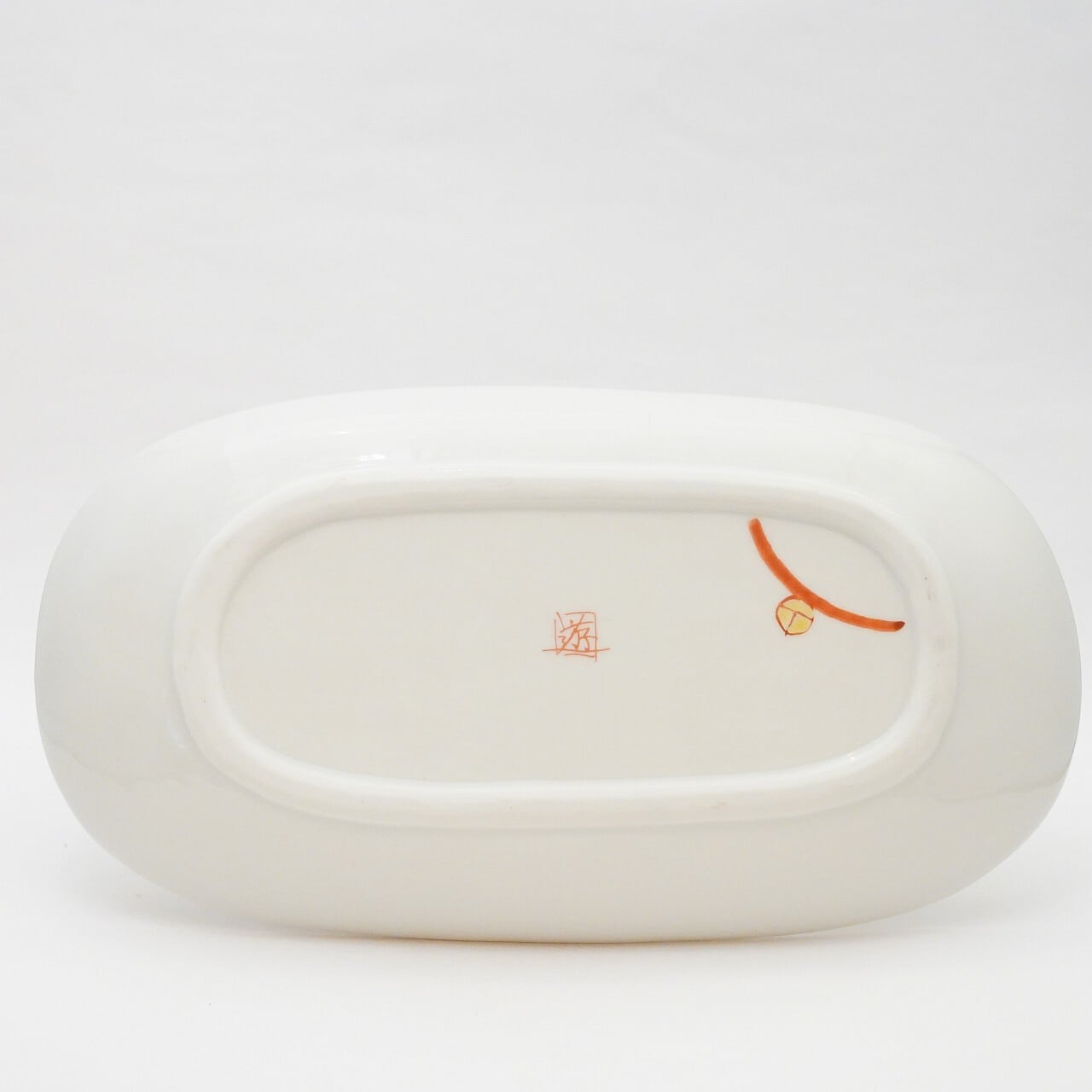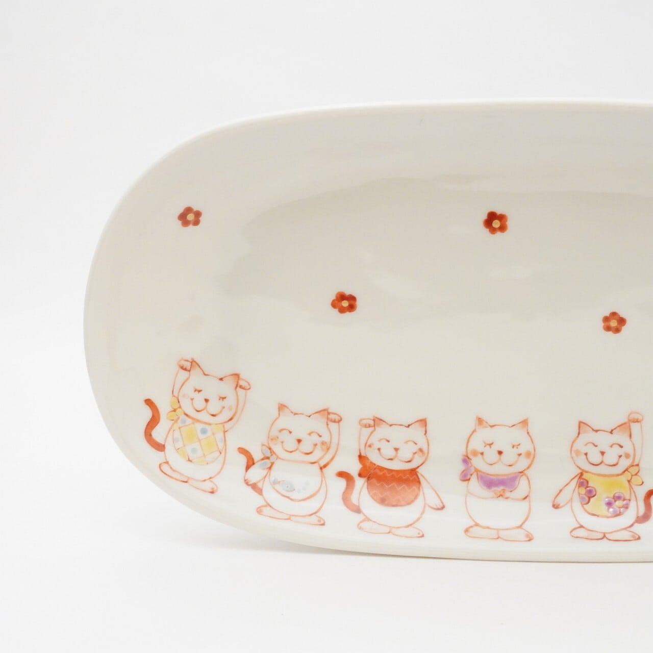 【色絵遊 小高裕子】長丸皿 七福猫 32-B