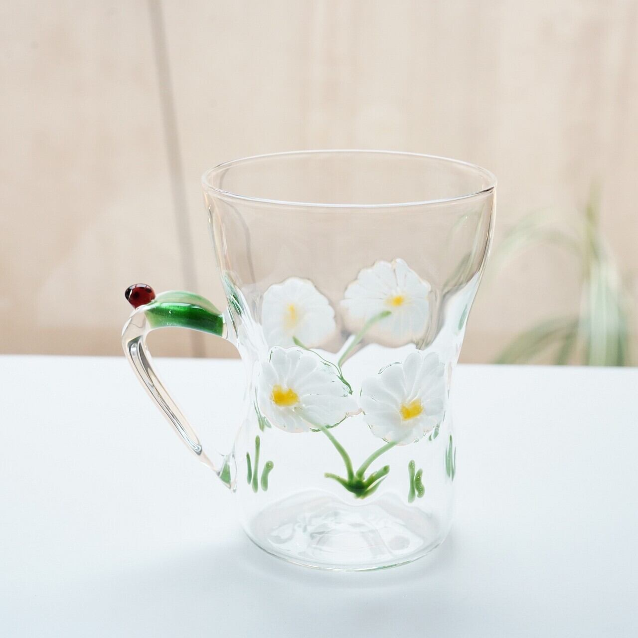 【竹川久仁子】耐熱ガラス 花マグカップ 白 T-1-E