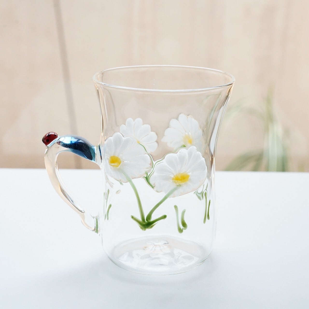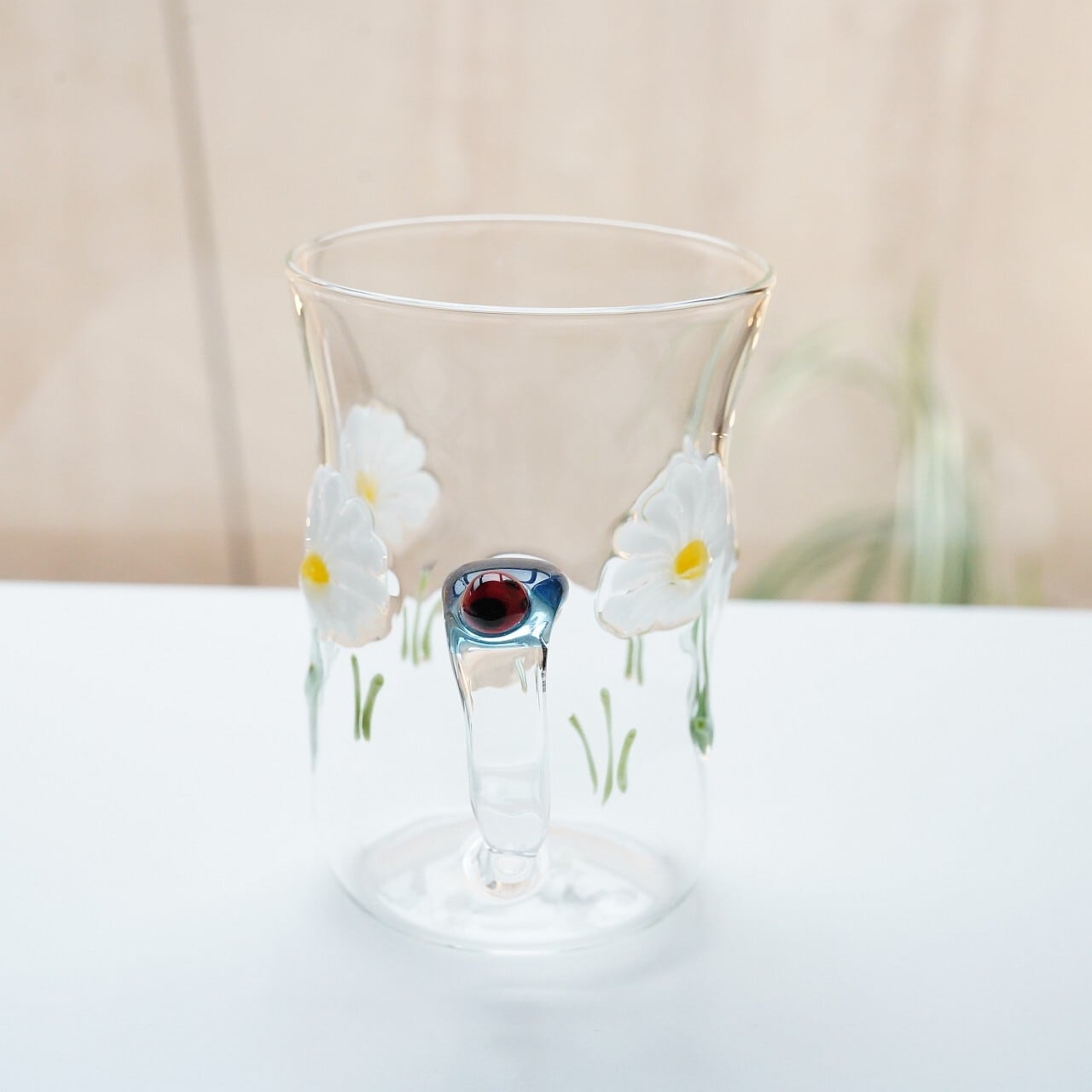 【竹川久仁子】耐熱ガラス 花マグカップ 白 T-1-J