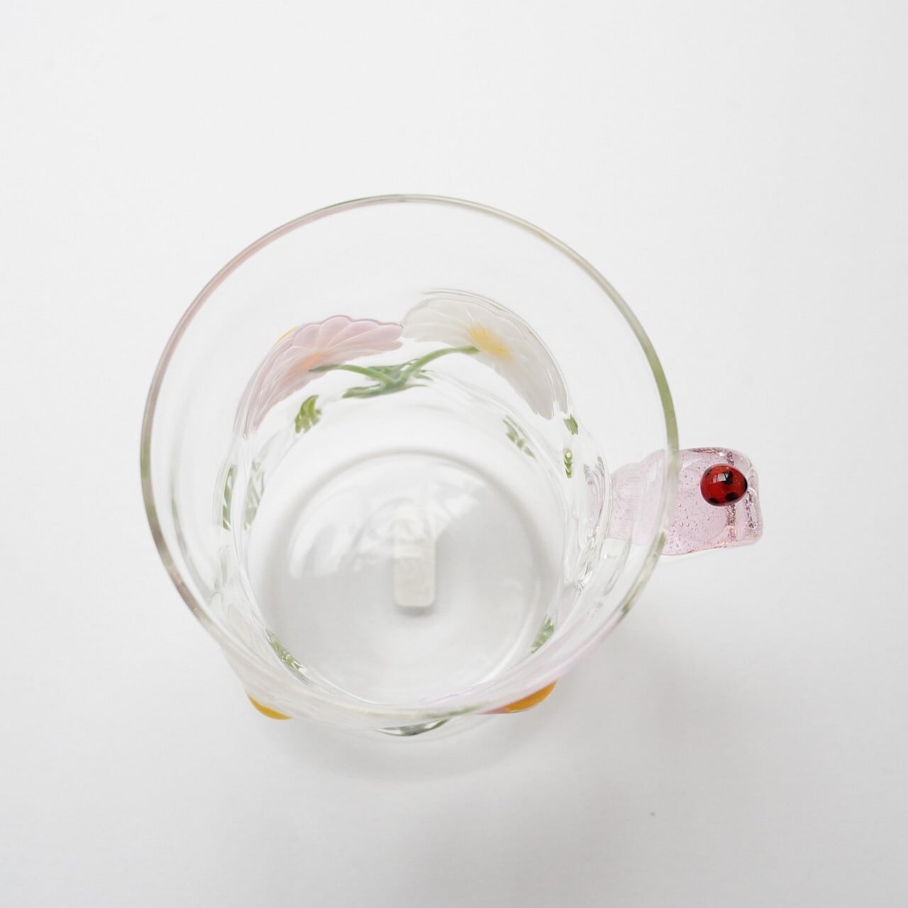 【竹川久仁子】耐熱ガラス 花マグカップ ピンク T-2-D