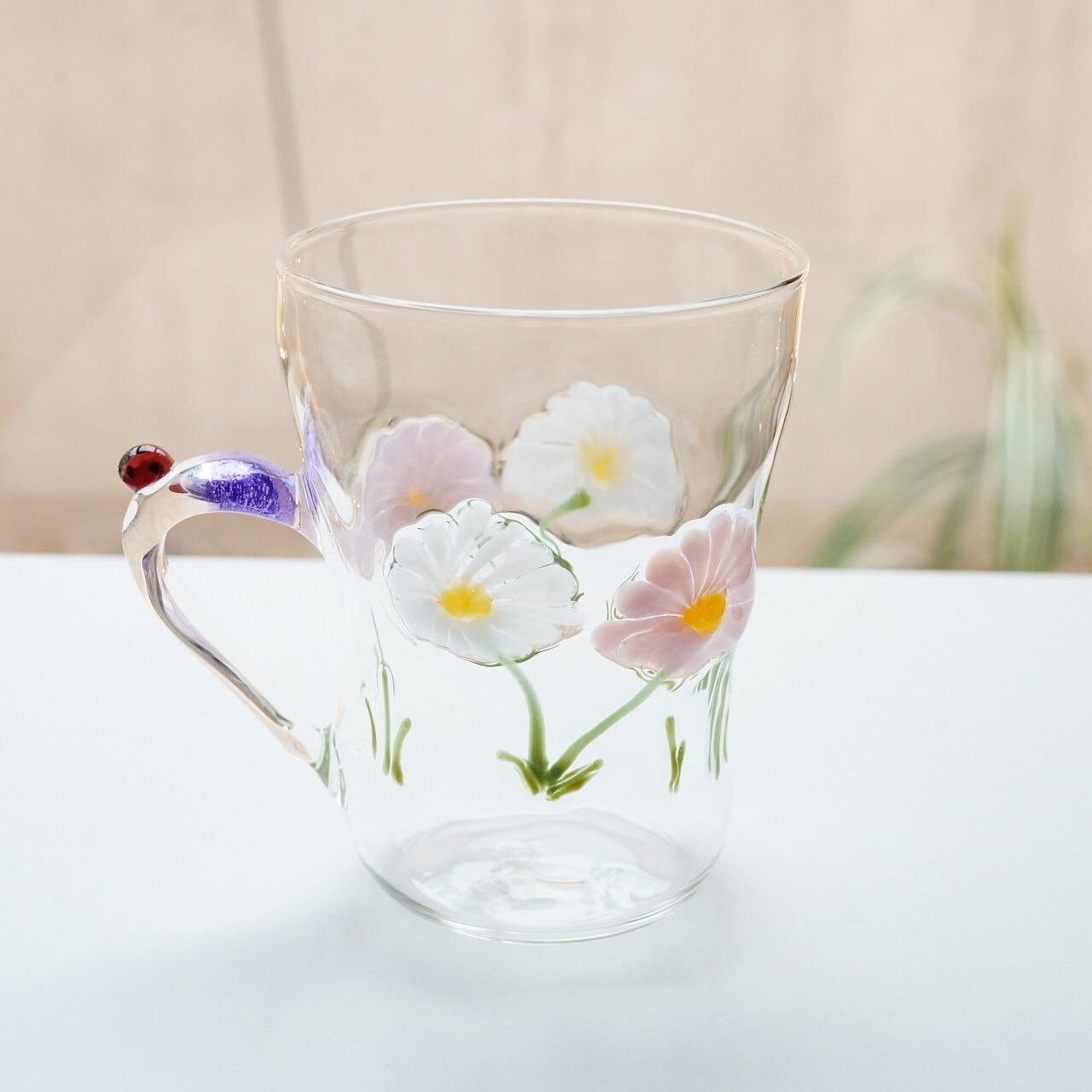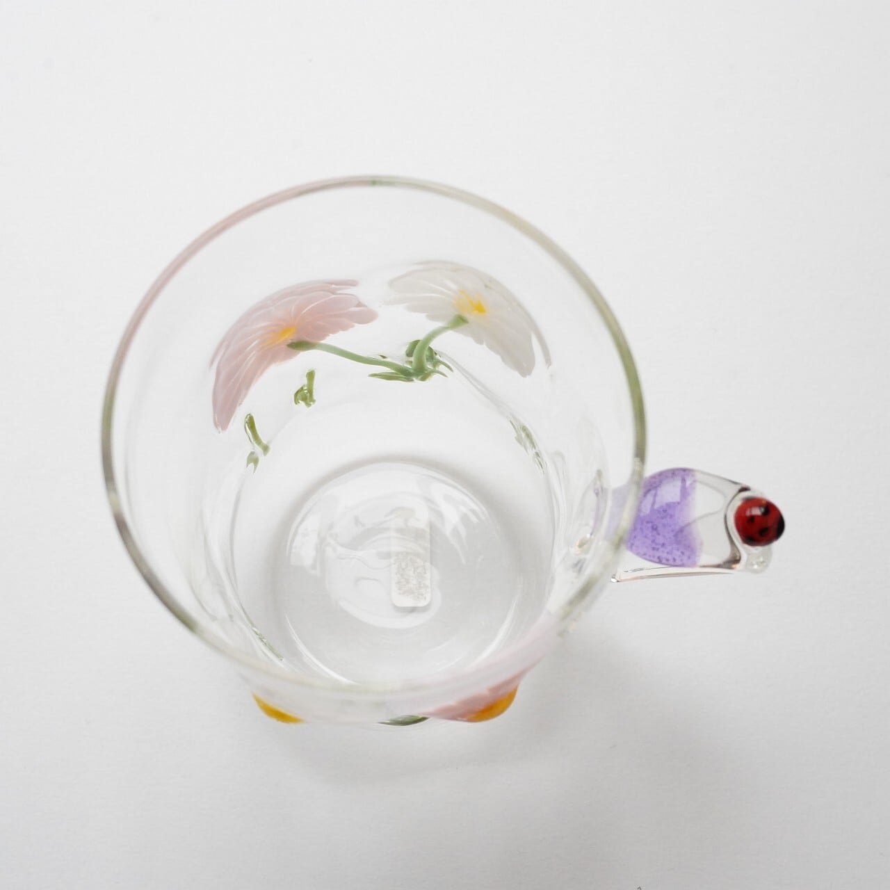 【竹川久仁子】耐熱ガラス 花マグカップ ピンク T-2-E