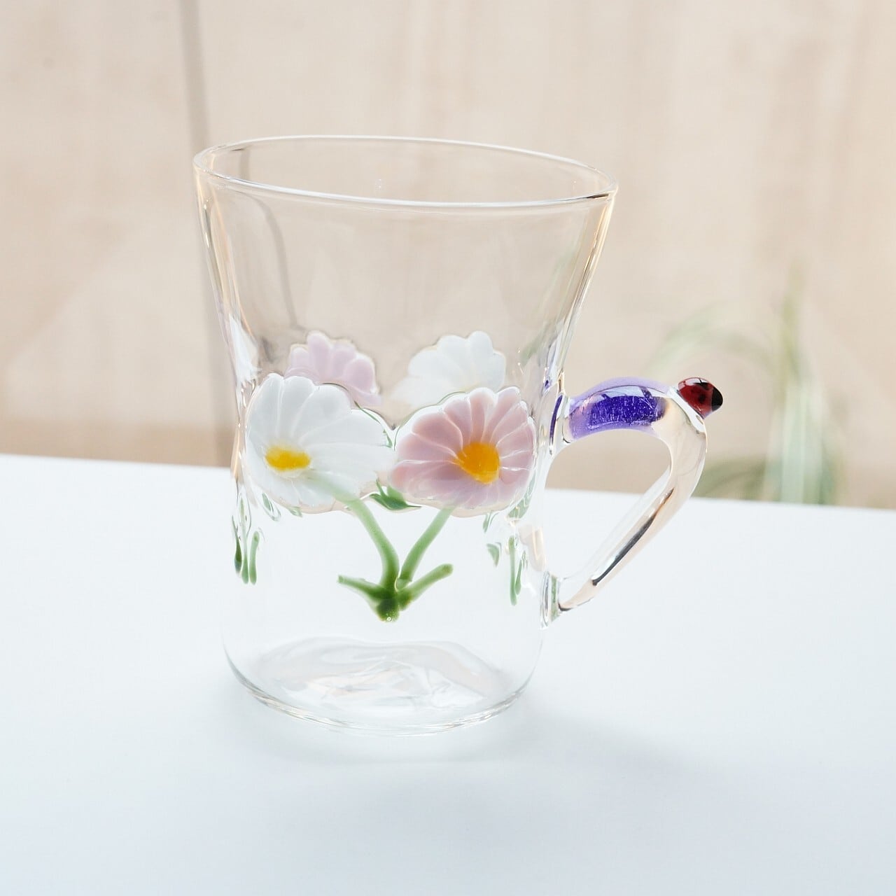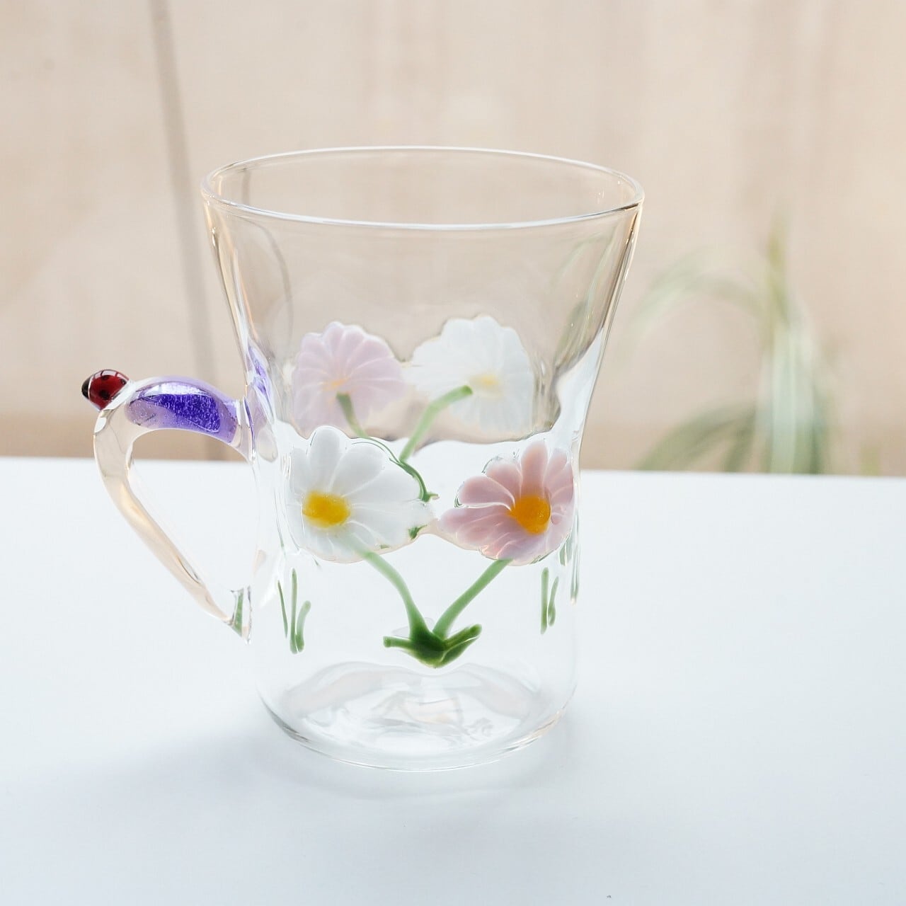 【竹川久仁子】耐熱ガラス 花マグカップ ピンク T-2-F