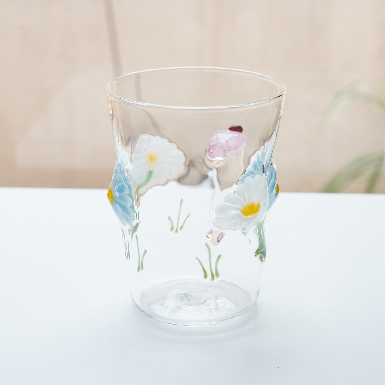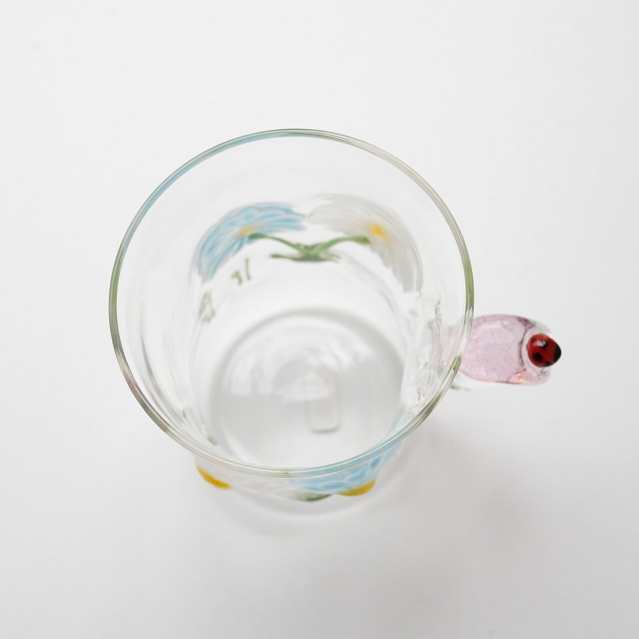 【竹川久仁子】耐熱ガラス 花マグカップ ブルー T-3-C