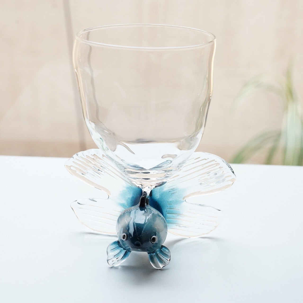【竹川久仁子】耐熱ガラス 青い金魚ワイングラス T-12-A