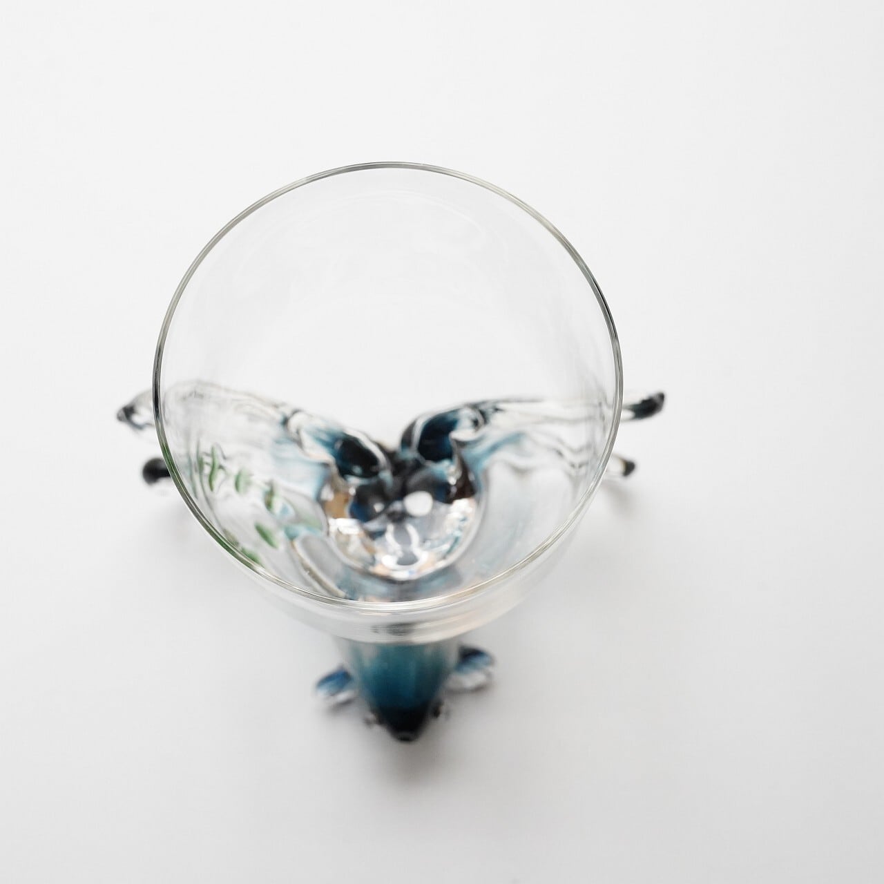 【竹川久仁子】耐熱ガラス 青い金魚ワイングラス T-12-B