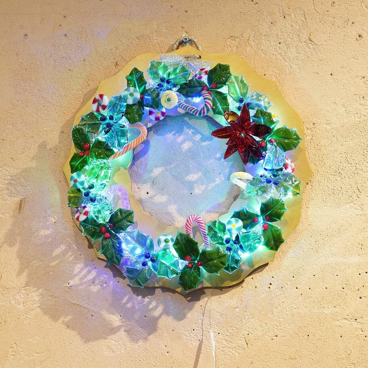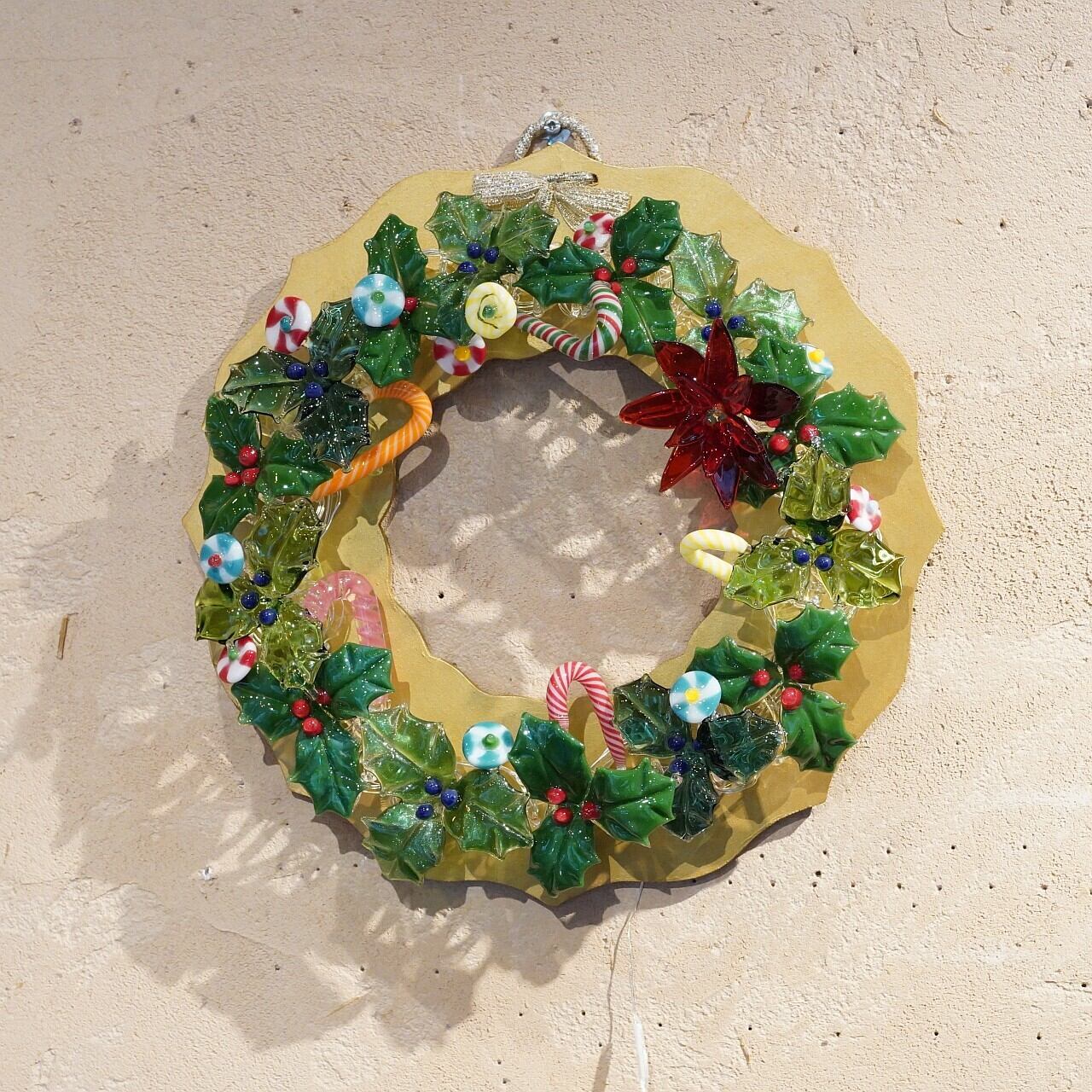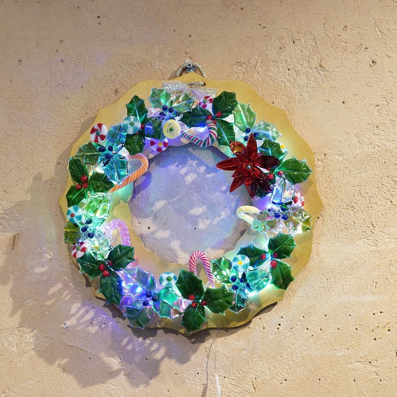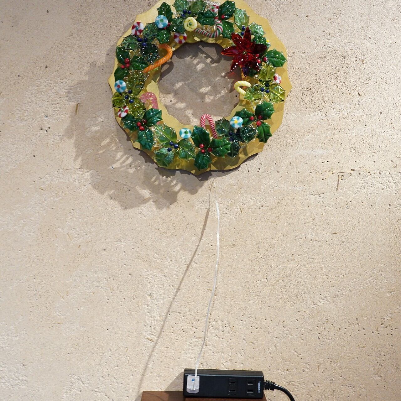【竹川久仁子】 Xmasリース LED付き (耐熱ガラス) T-44
