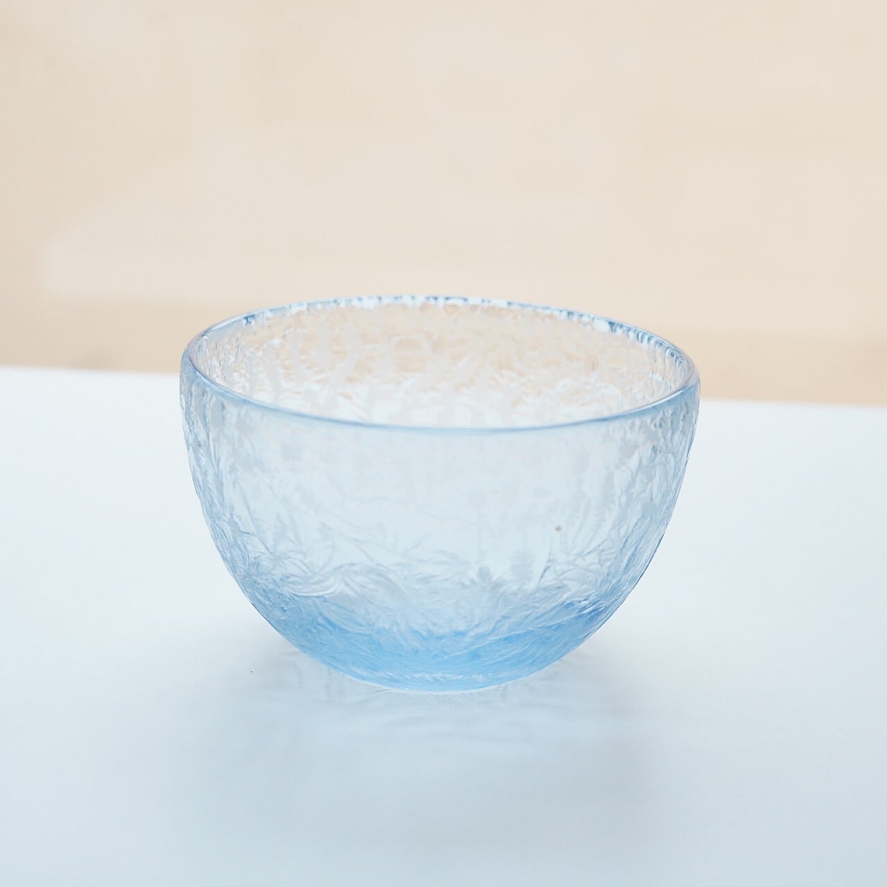 ■ガラスの模様は、サンドブラストなどで磨りガラス状にした器の表面に、水で解いて湯せんした膠を塗り生み出されています。
