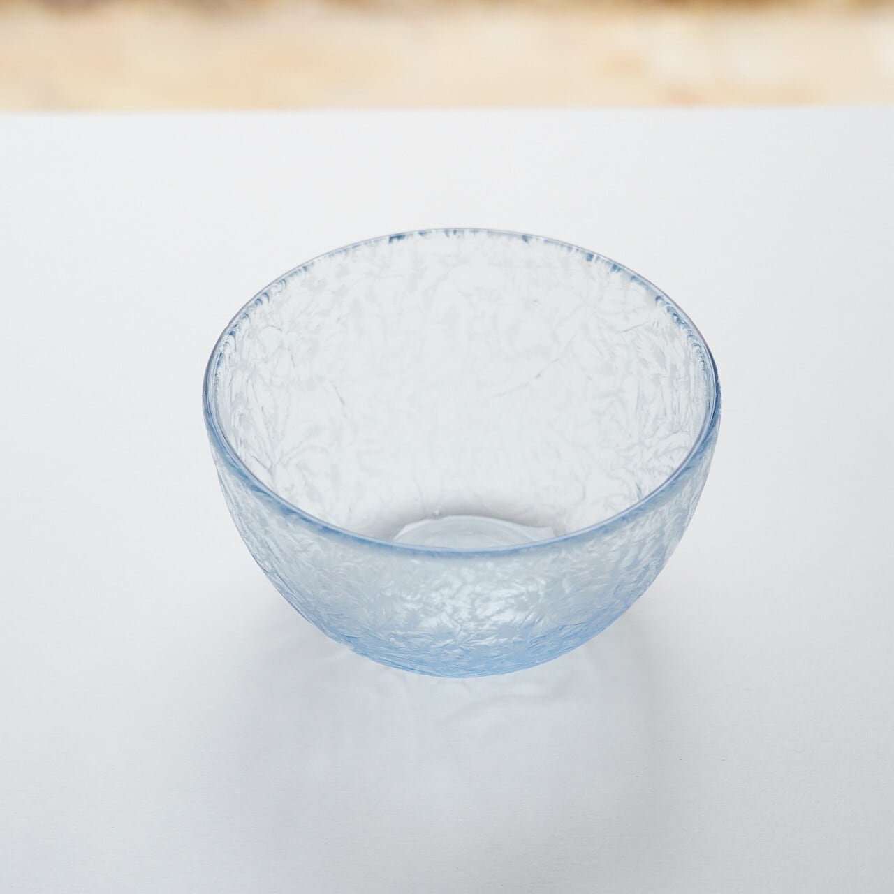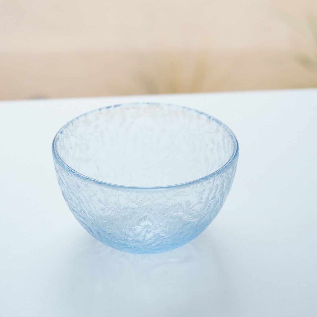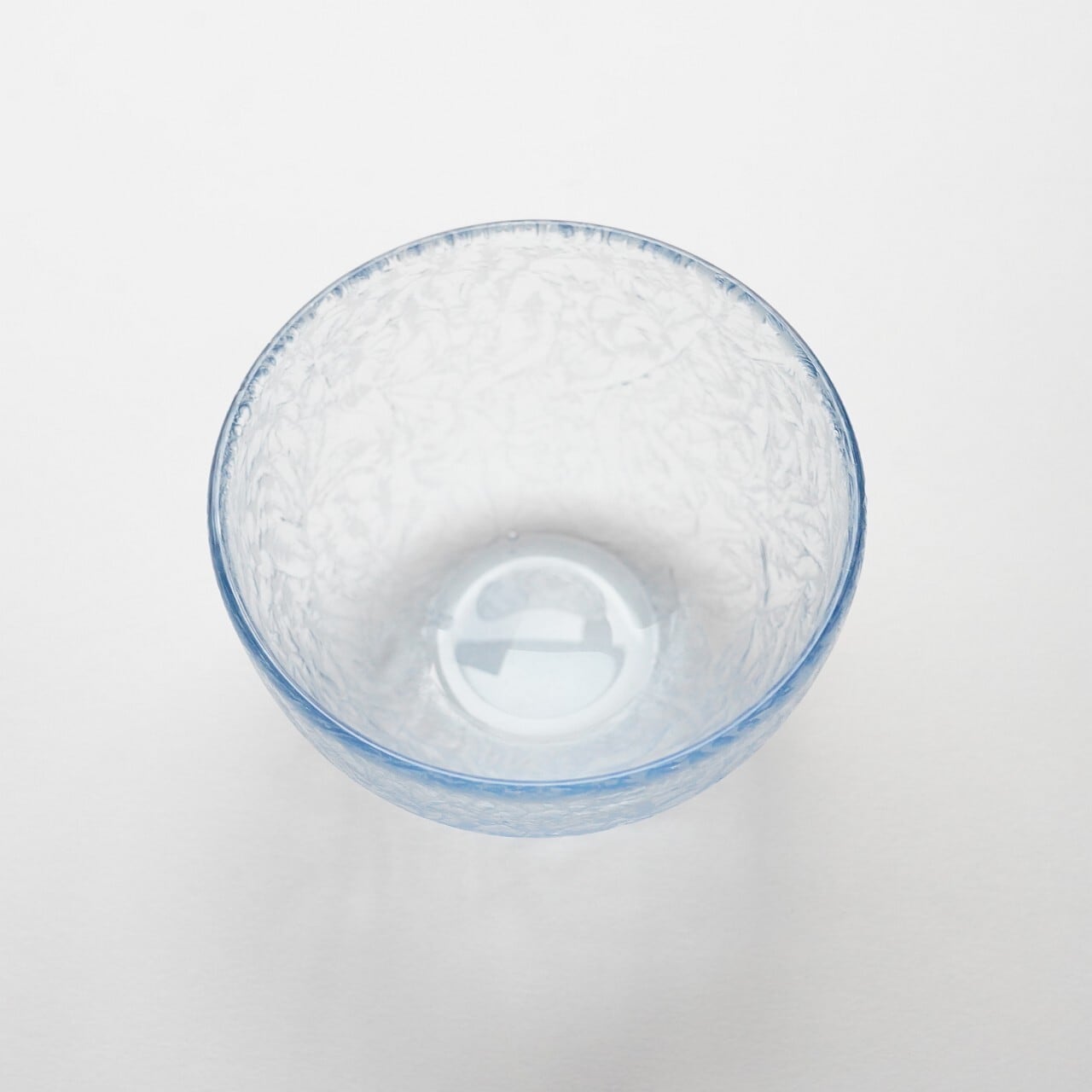 ■ガラスの模様は、サンドブラストなどで磨りガラス状にした器の表面に、水で解いて湯せんした膠を塗り生み出されています。