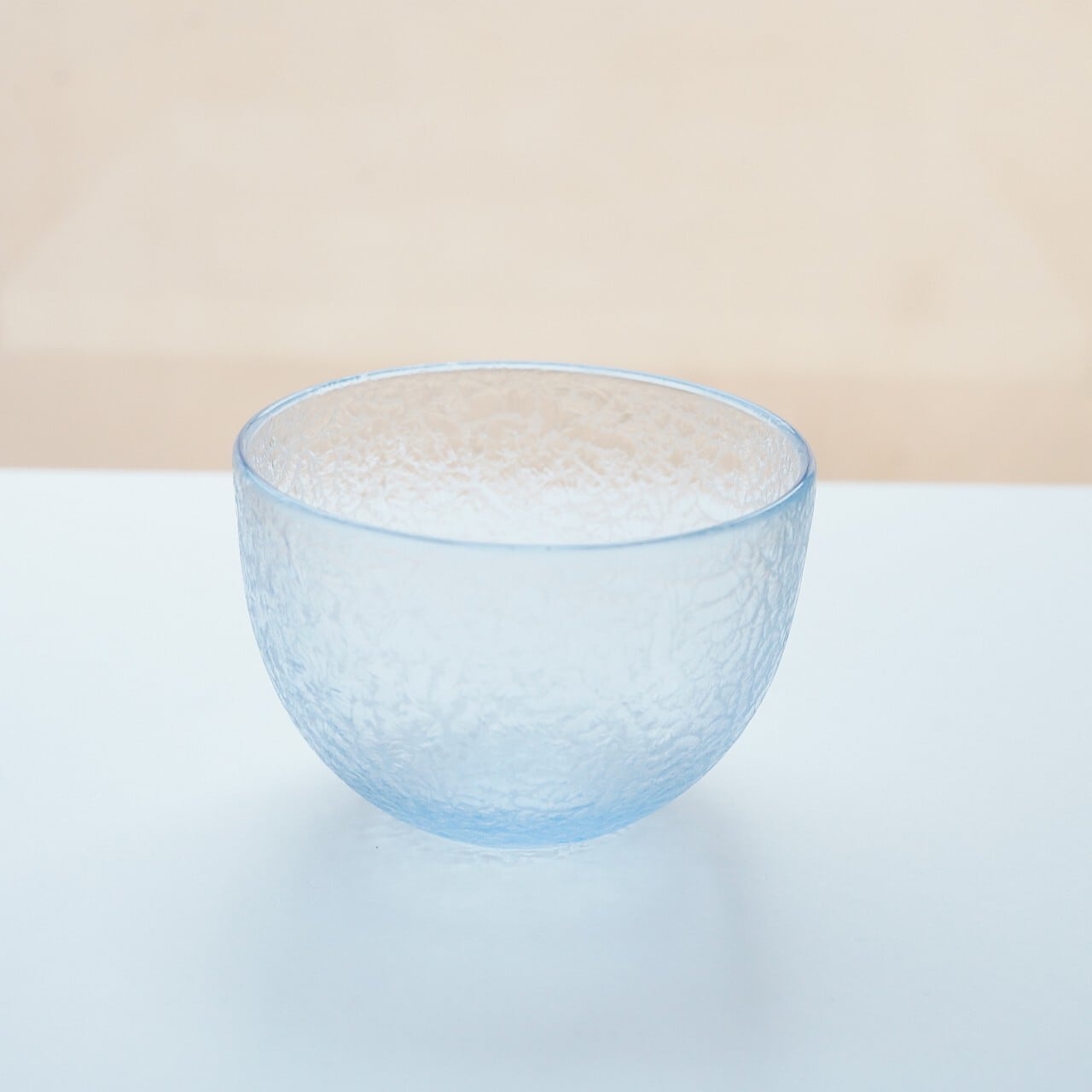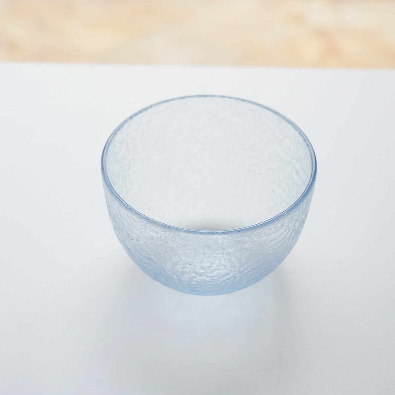 ■ガラスの模様は、サンドブラストなどで磨りガラス状にした器の表面に、水で解いて湯せんした膠を塗り生み出されています。