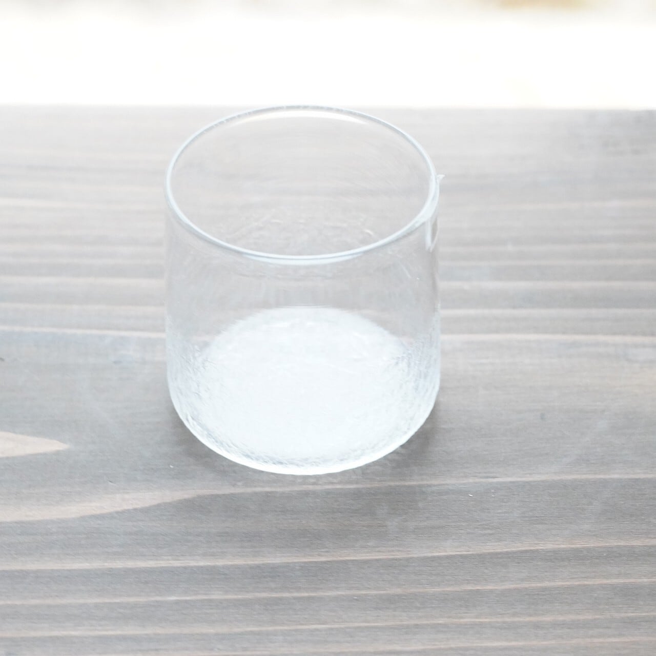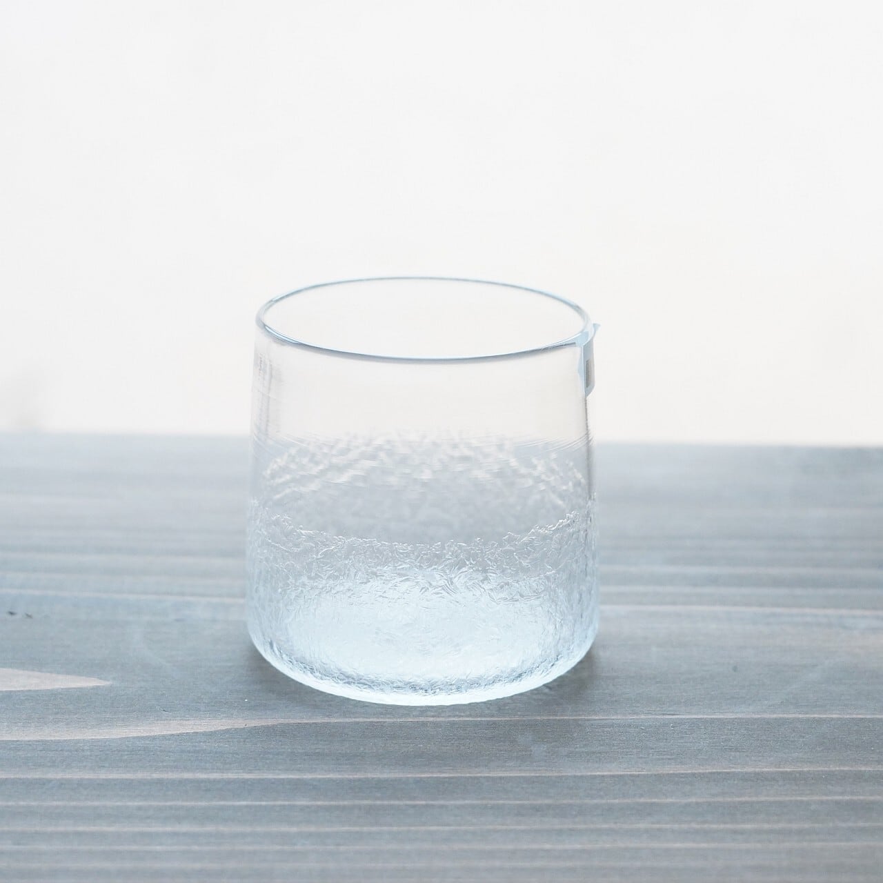 ■ガラスの模様は、サンドブラストなどで磨りガラス状にした器の表面に、水で解いて湯せんした膠を塗り生み出されています。