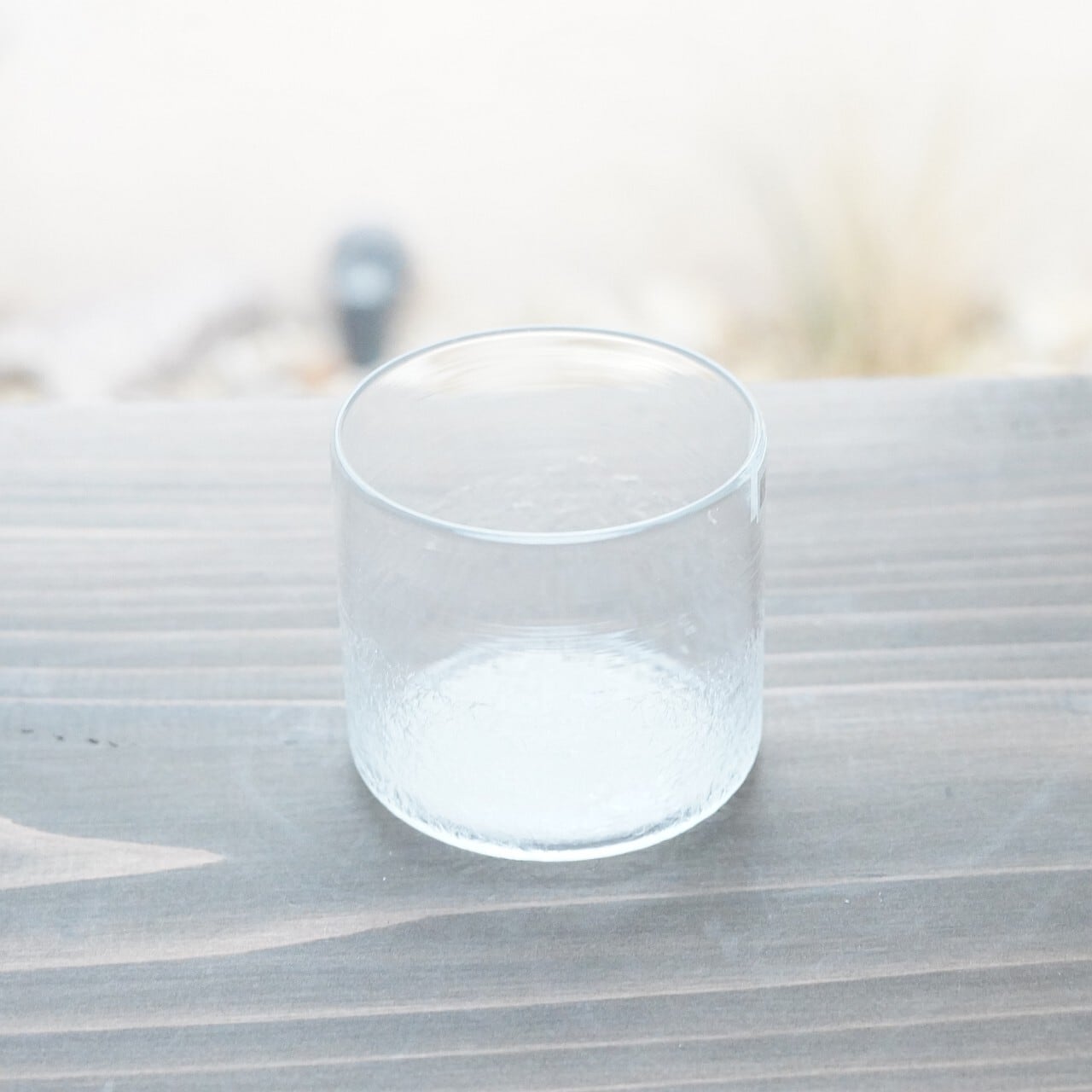 ■ガラスの模様は、サンドブラストなどで磨りガラス状にした器の表面に、水で解いて湯せんした膠を塗り生み出されています。