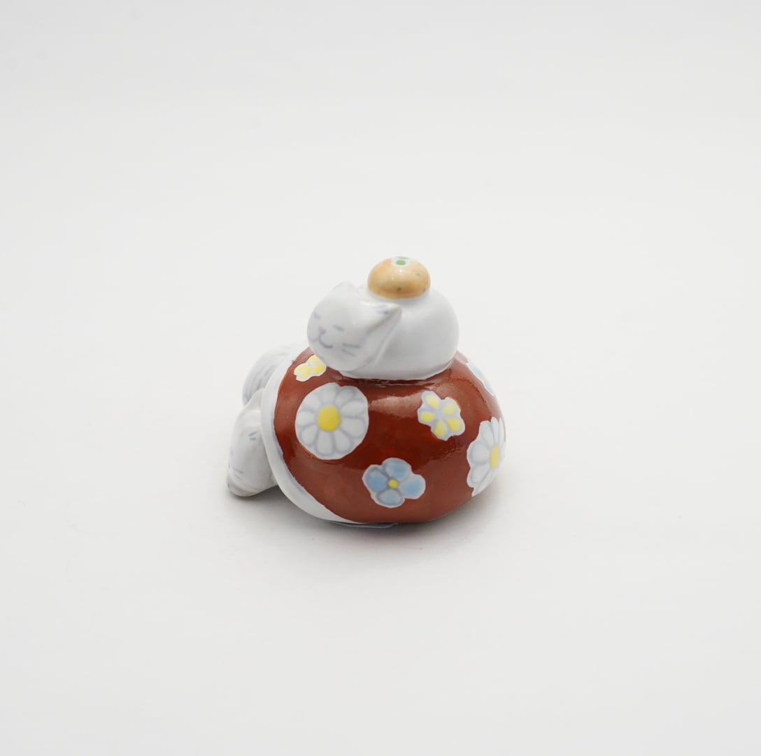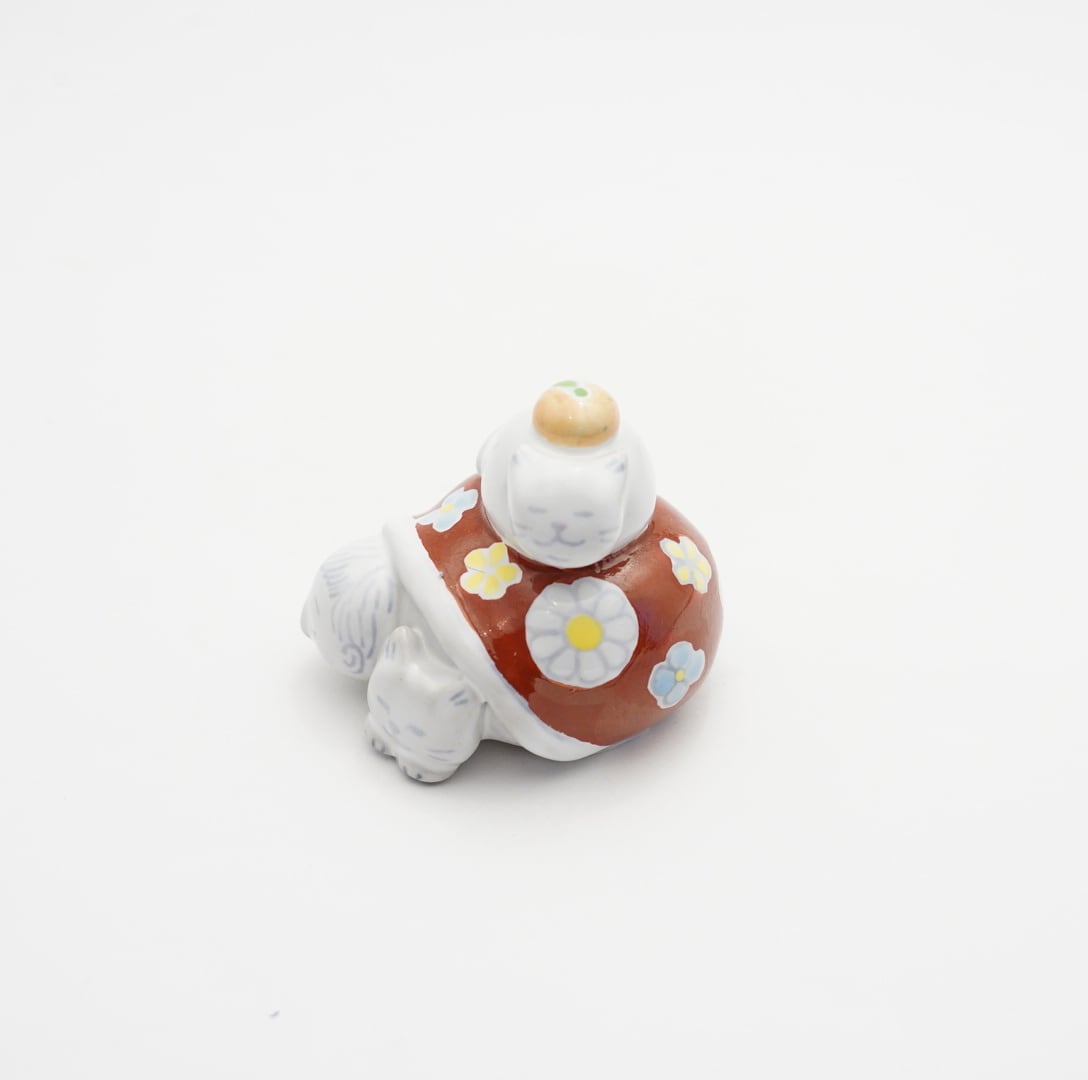 【木村扶由子】ねこと寝正月 鏡餅 赤絵 18