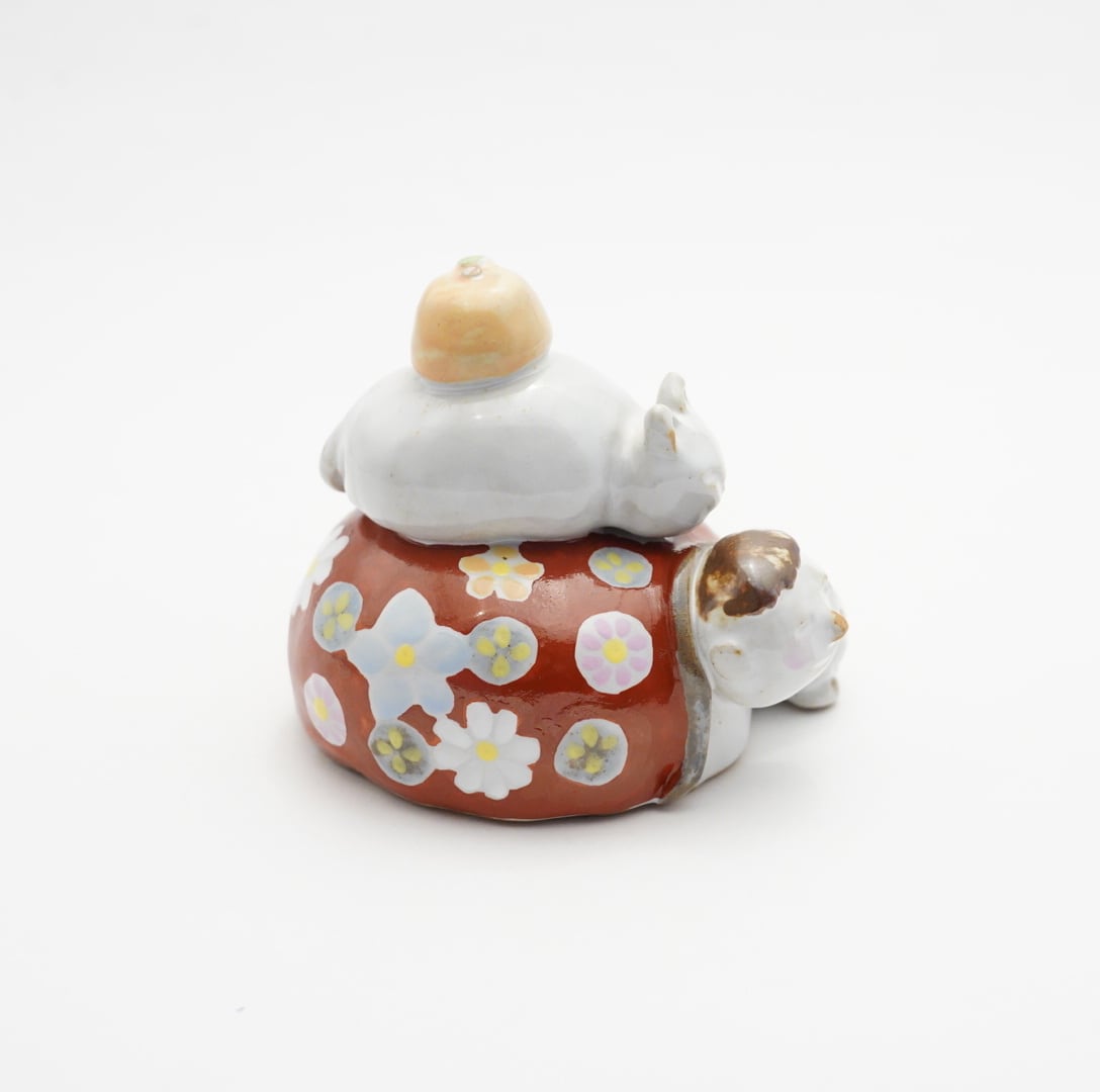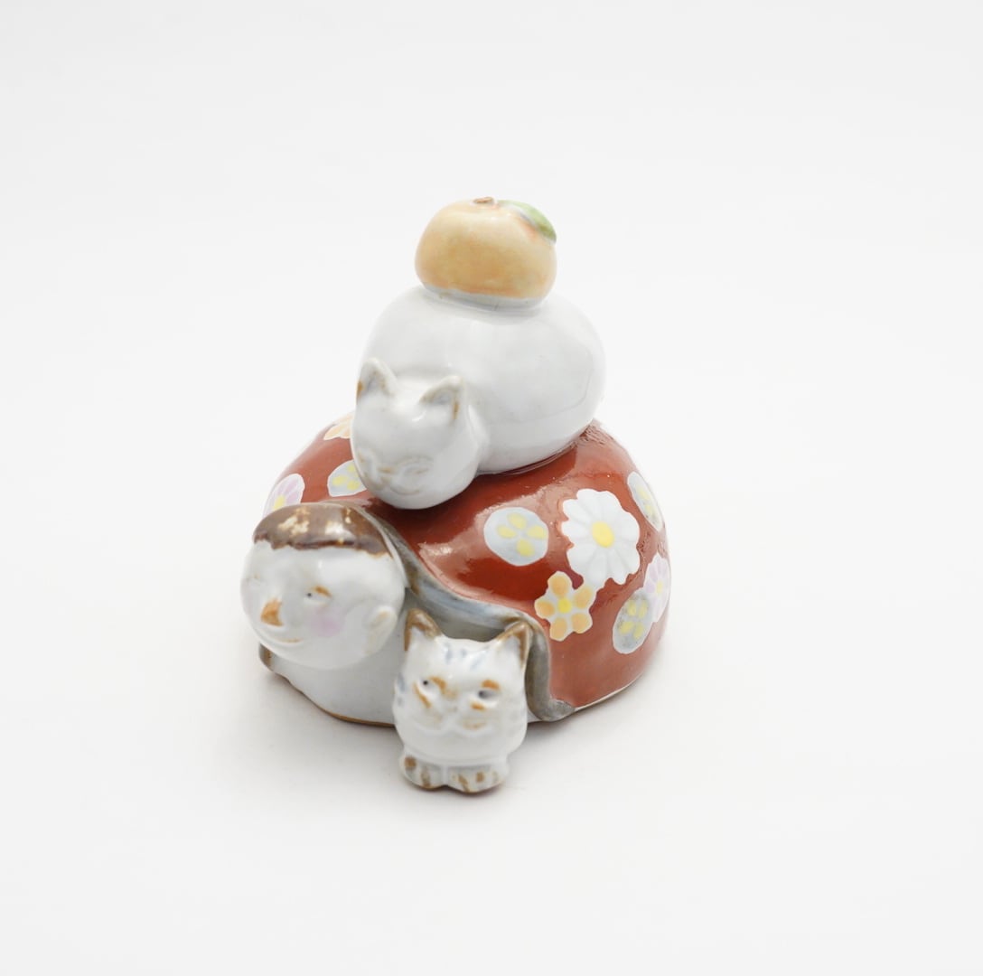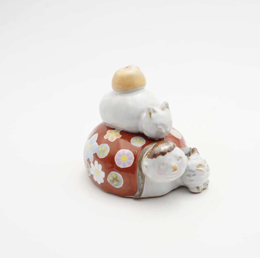 【木村扶由子】ねこと寝正月 鏡餅 大赤絵 19