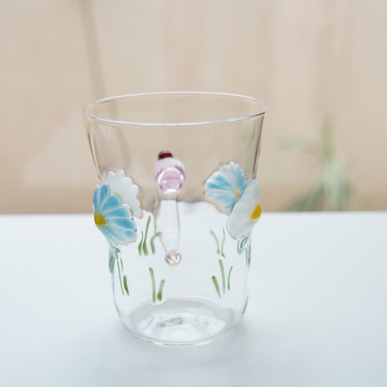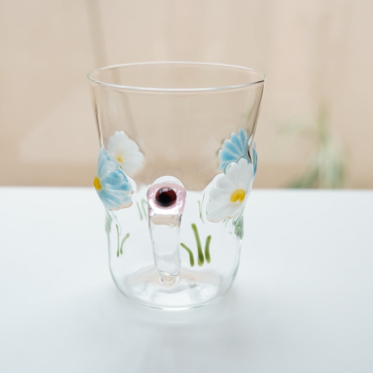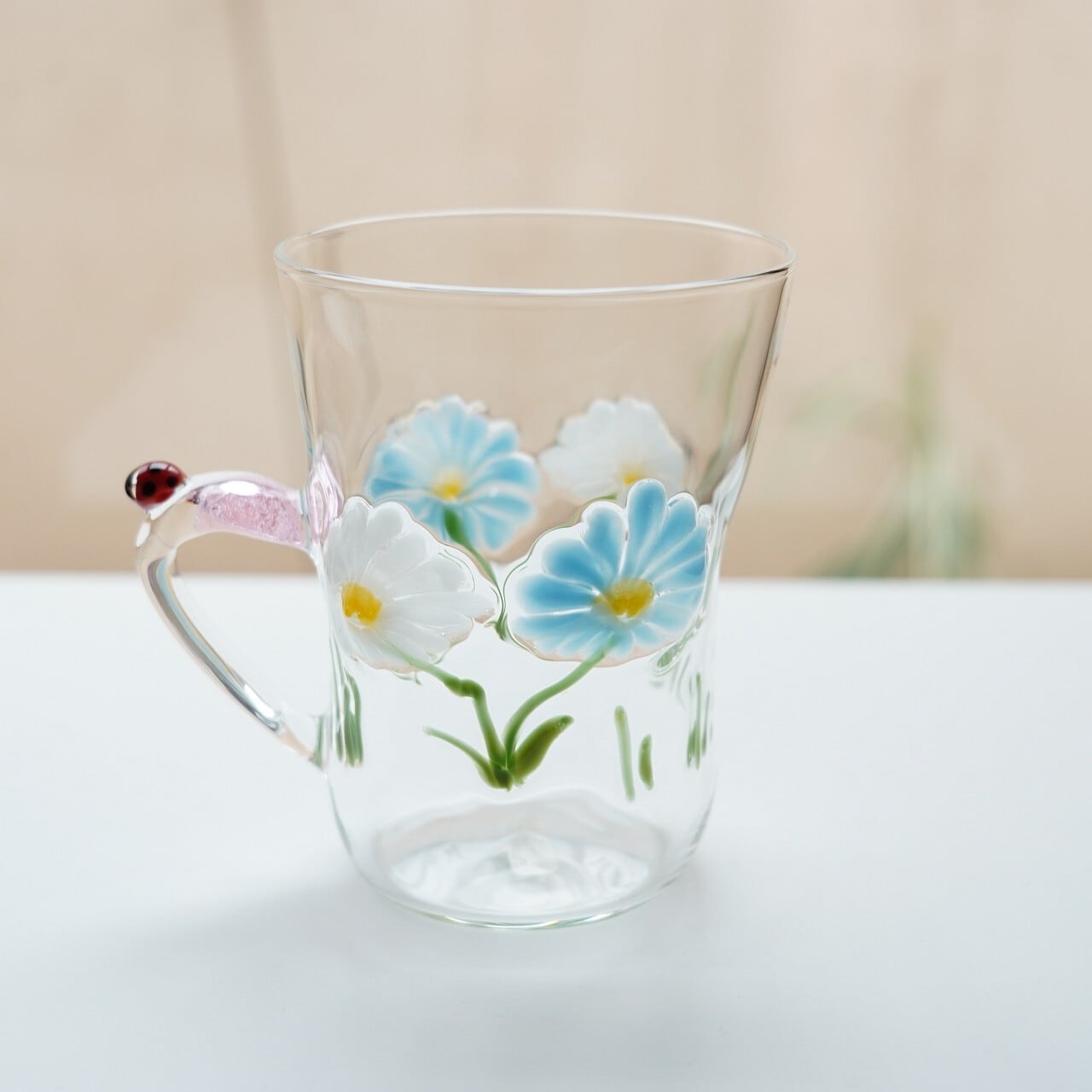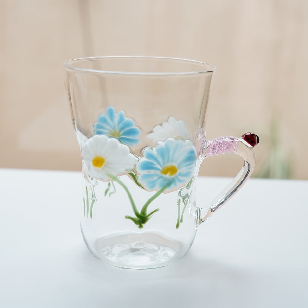 【竹川久仁子】耐熱ガラス 花マグカップ ブルー T-3-F