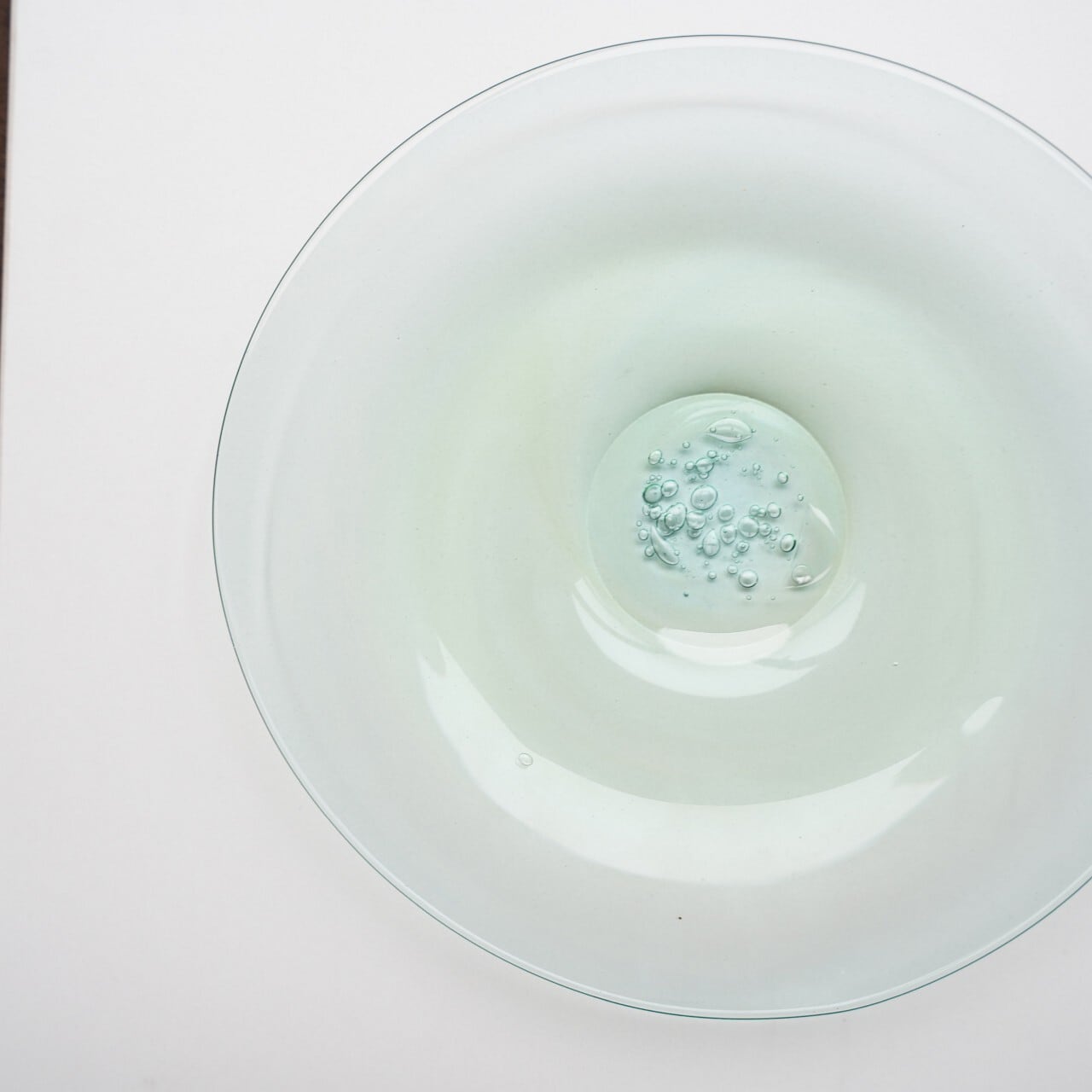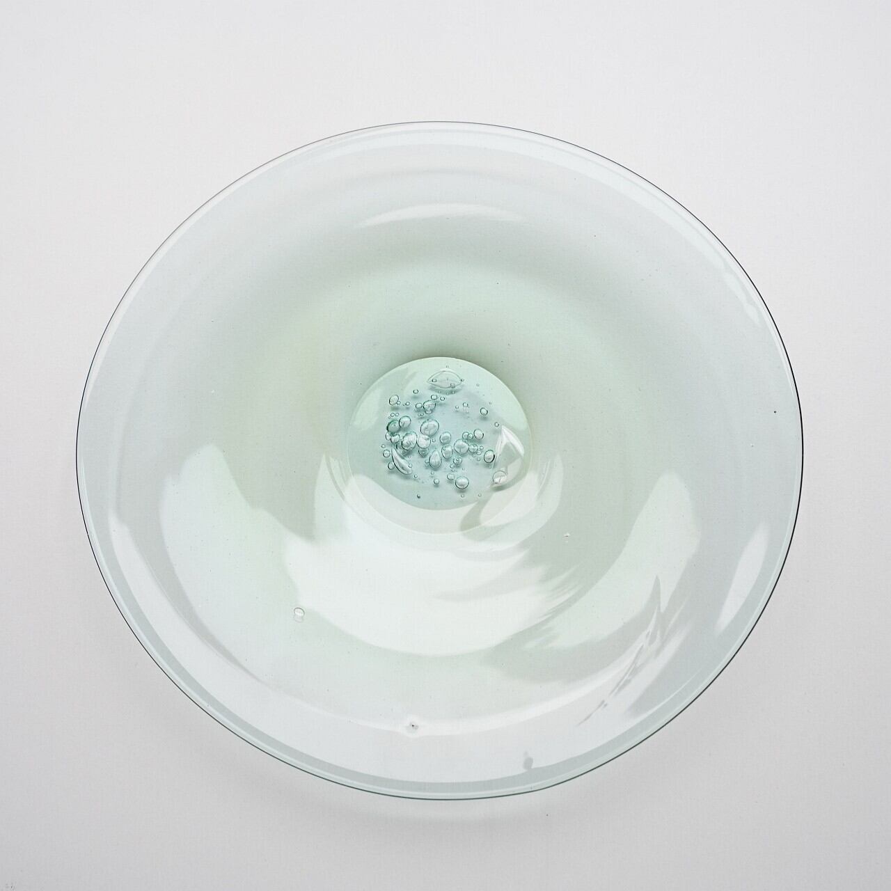 増えすぎてしまう水草を灰にしてガラスの中に溶け込ませたら、美しく優しい琵琶湖の色に発色しました。