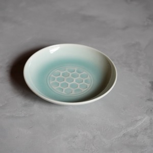【土井雅文】青磁印文小皿(亀甲)21