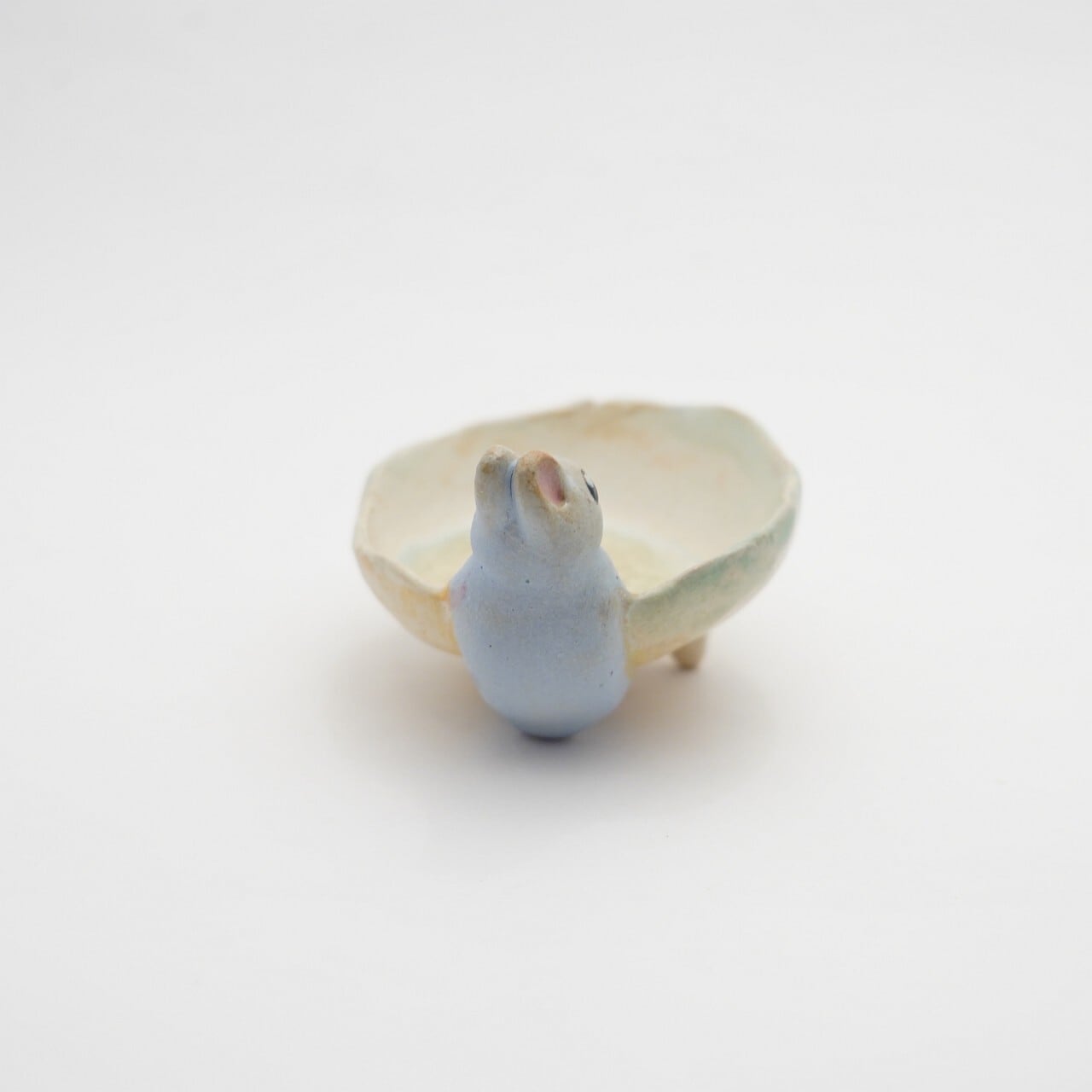 うさぎを10年間飼っていた経験を活かして、うさぎの魅力・触れる事による幸せな気持ち、そして愛を陶芸の作品に込めています。それにより、多くの人が気付いていない、唯のかわいいシルエットしての魅力だけではないうさぎの表情や魅力をもっと色んな方に届けられたらな、と願い制作を続けています。