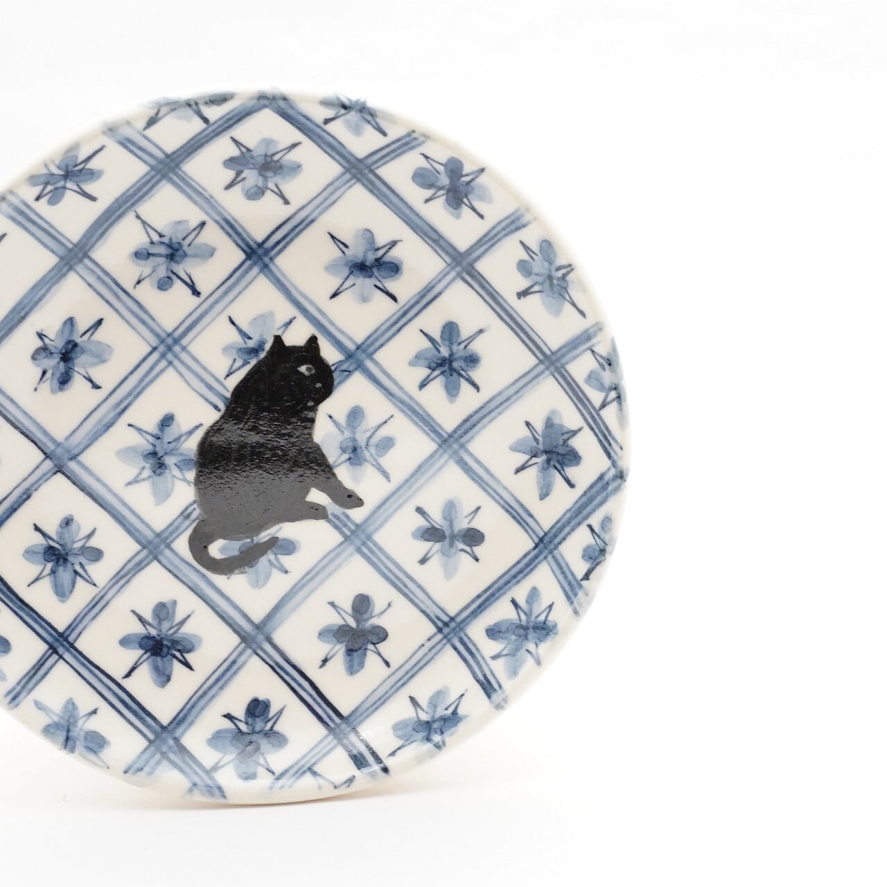 【陶彩工房Canoe】「江戸黒猫」4寸たたら皿 15-A