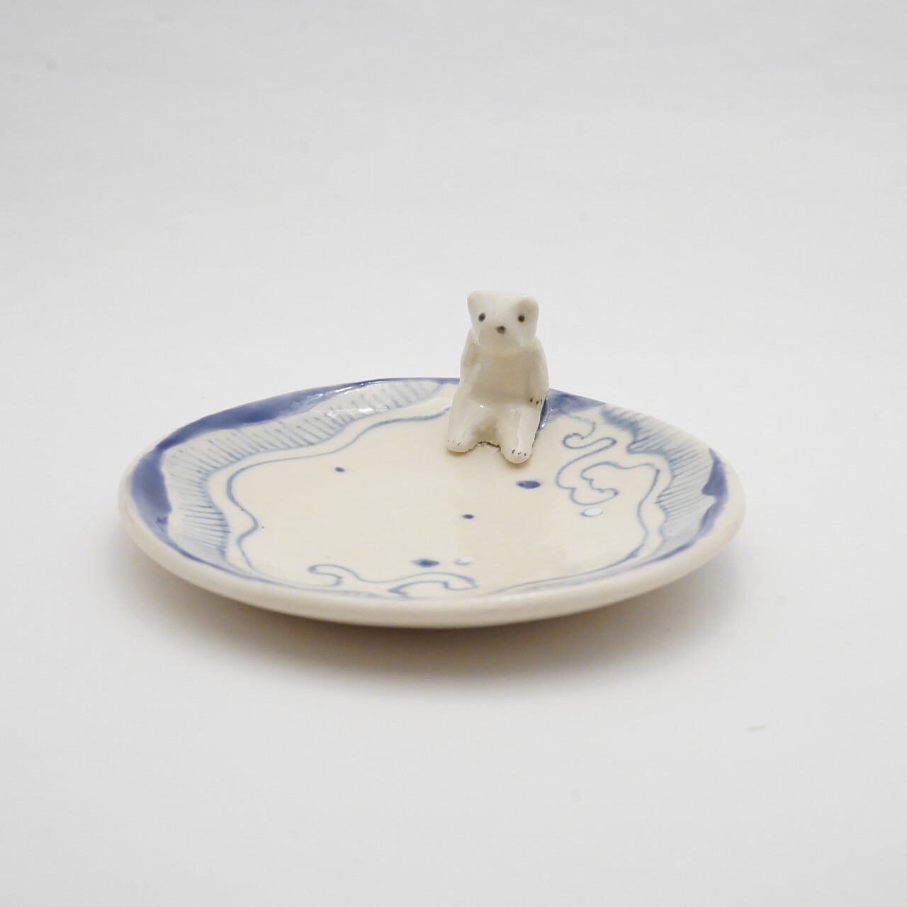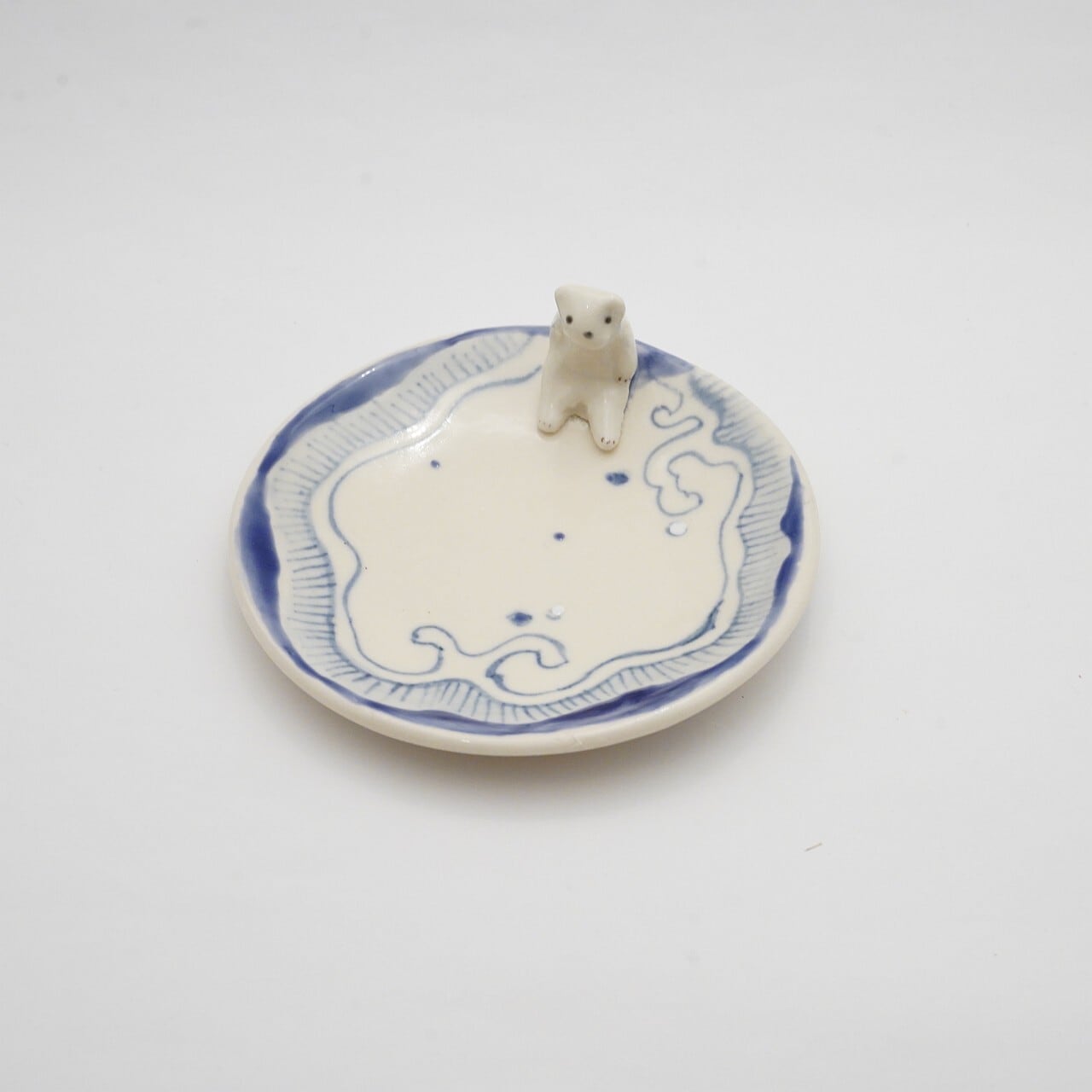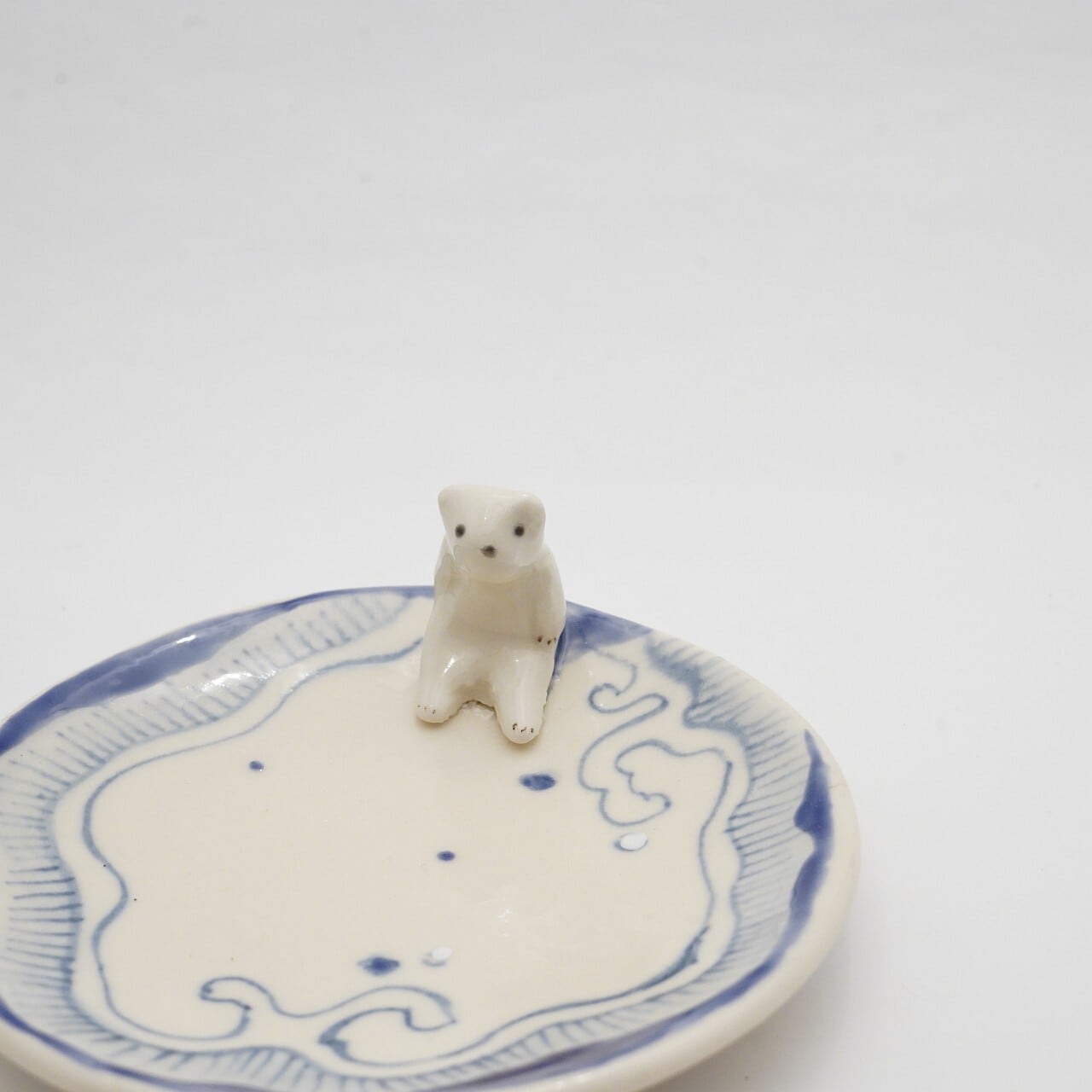 【陶彩工房Canoe】「物思いのシロクマ」4寸皿 21