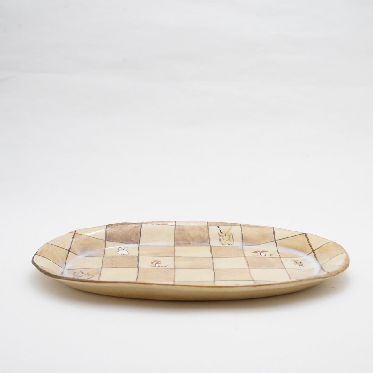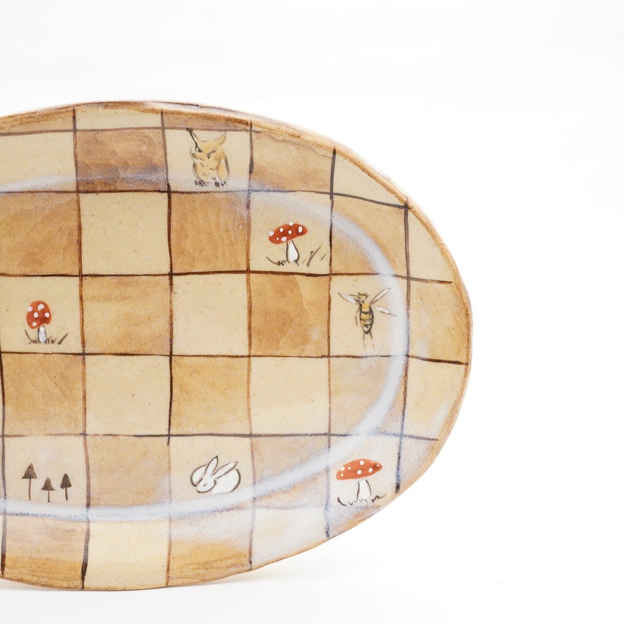 【陶彩工房Canoe】「森の動物ときのこ」オーバル皿 27
