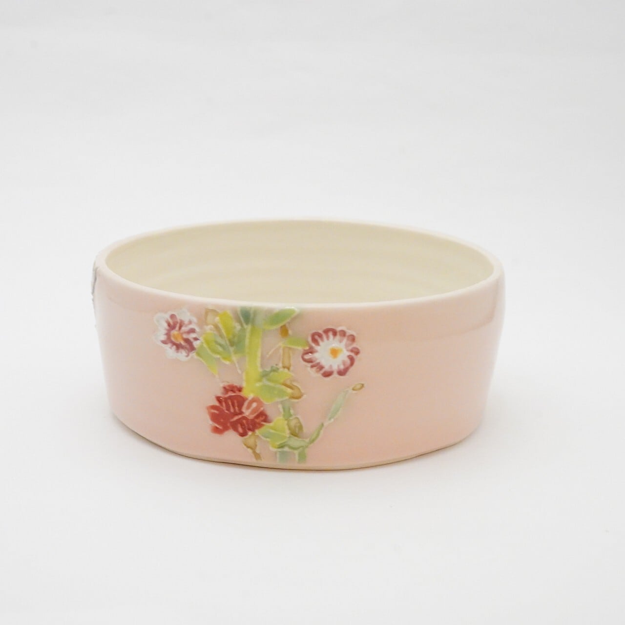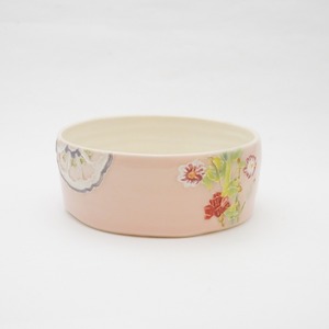 【陶芸工房ラ・プエルタ】花紋丸鉢ピンク