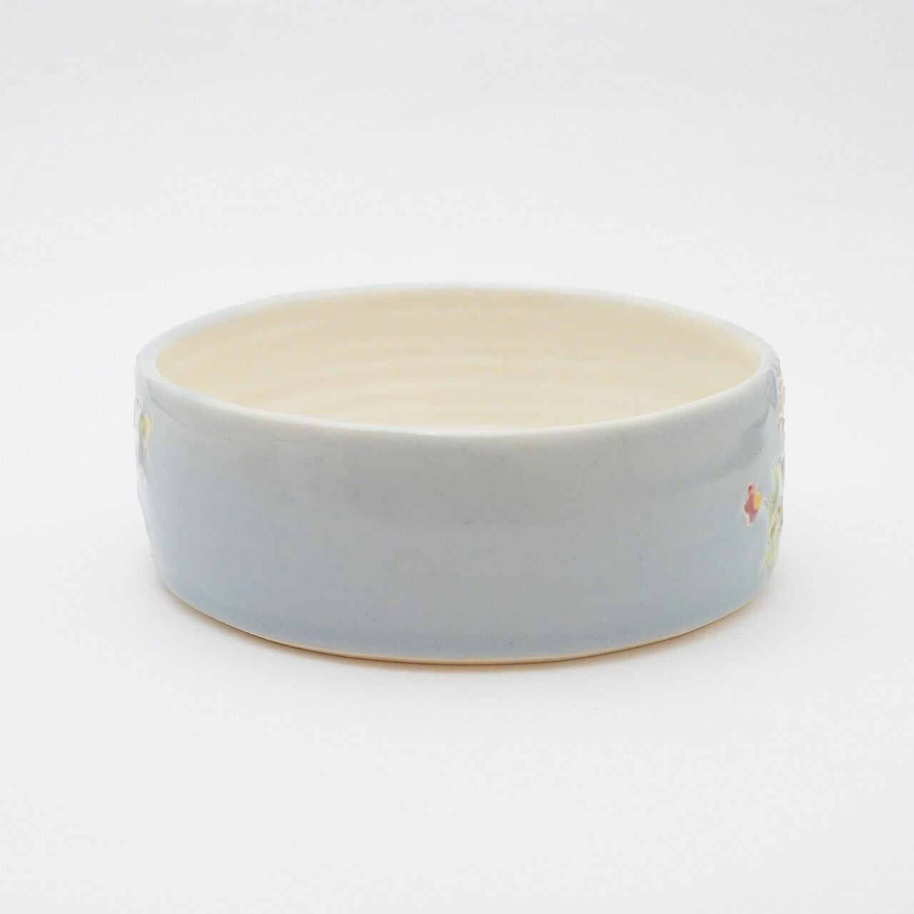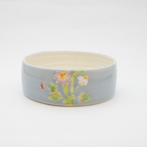【陶芸工房ラ・プエルタ】花紋丸鉢ブルー