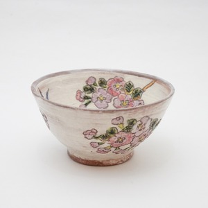 【陶芸工房ラ・プエルタ】白化粧茶碗八重桜と燕