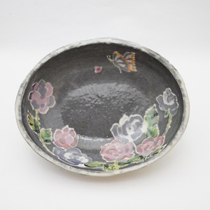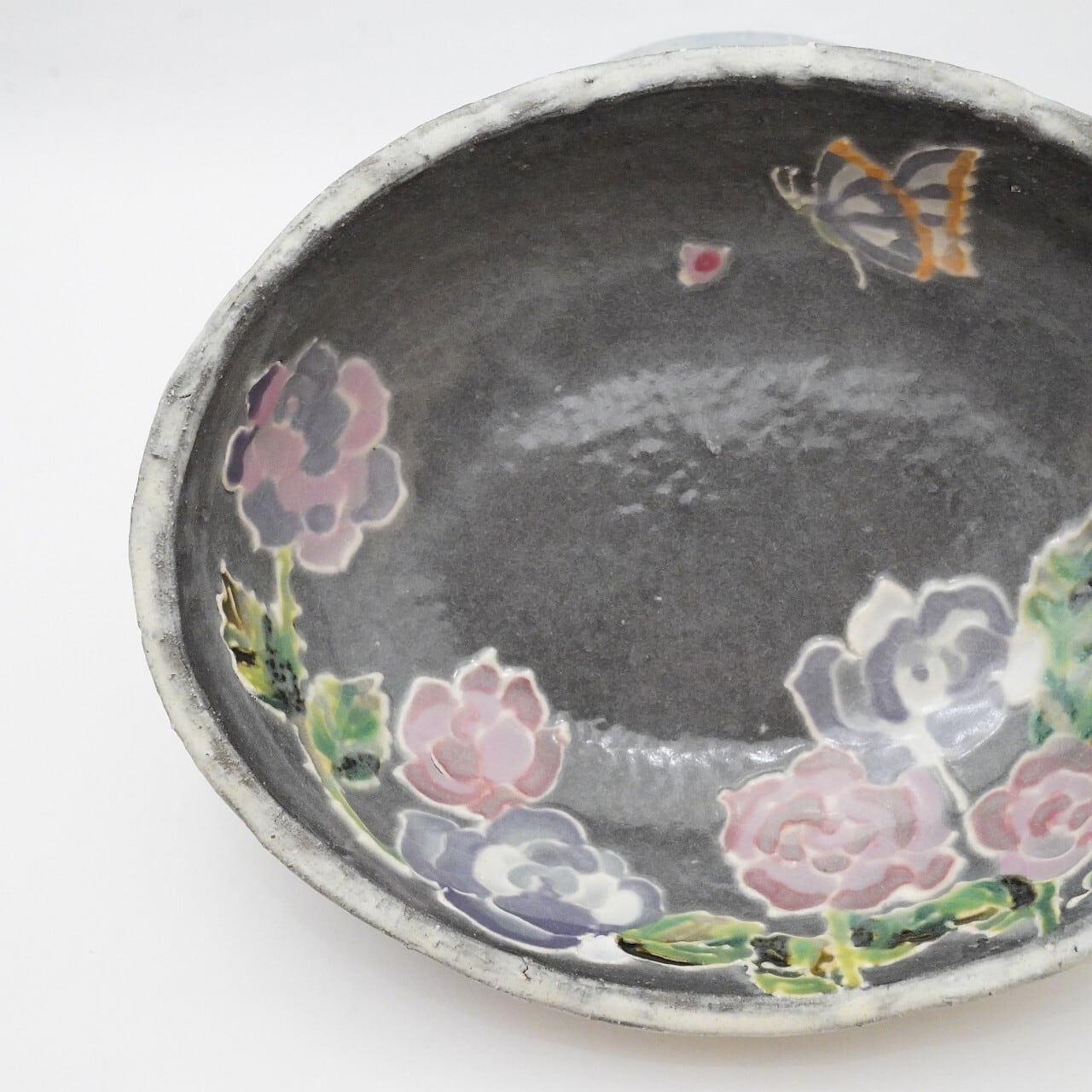 【陶芸工房ラ・プエルタ】黒い器バラ楕円鉢
