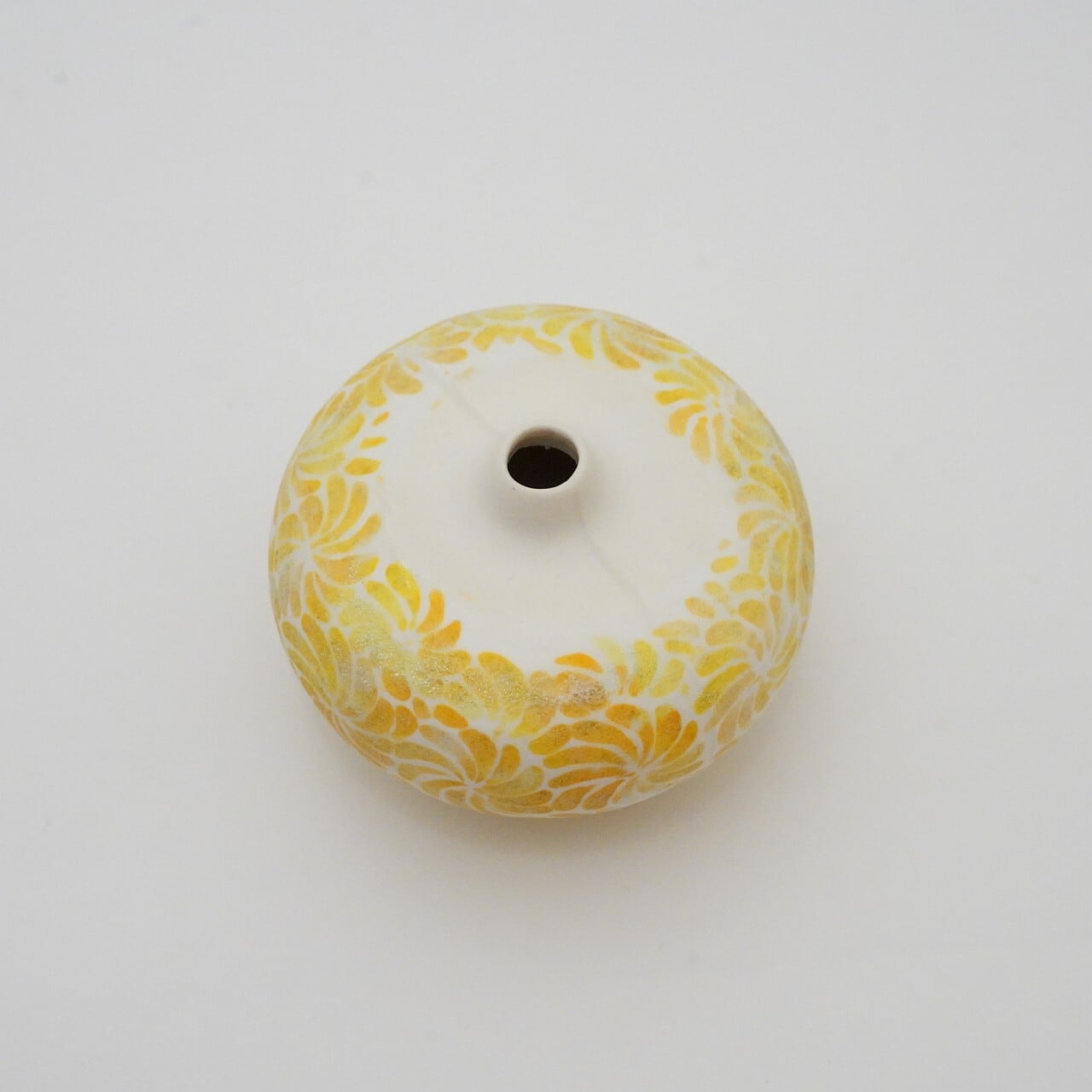 轆轤や石膏型(花器などは石膏型)で成形した生地に、削りの模様を入れ、素焼きし、その後パステルの色を付け、細かい泡が発生する釉薬を掛け焼いていきます。