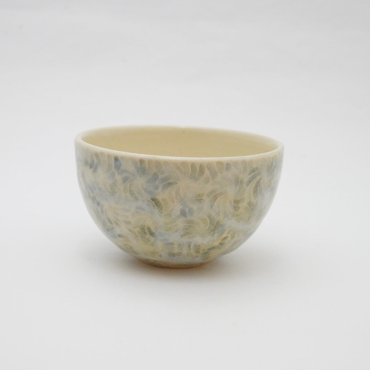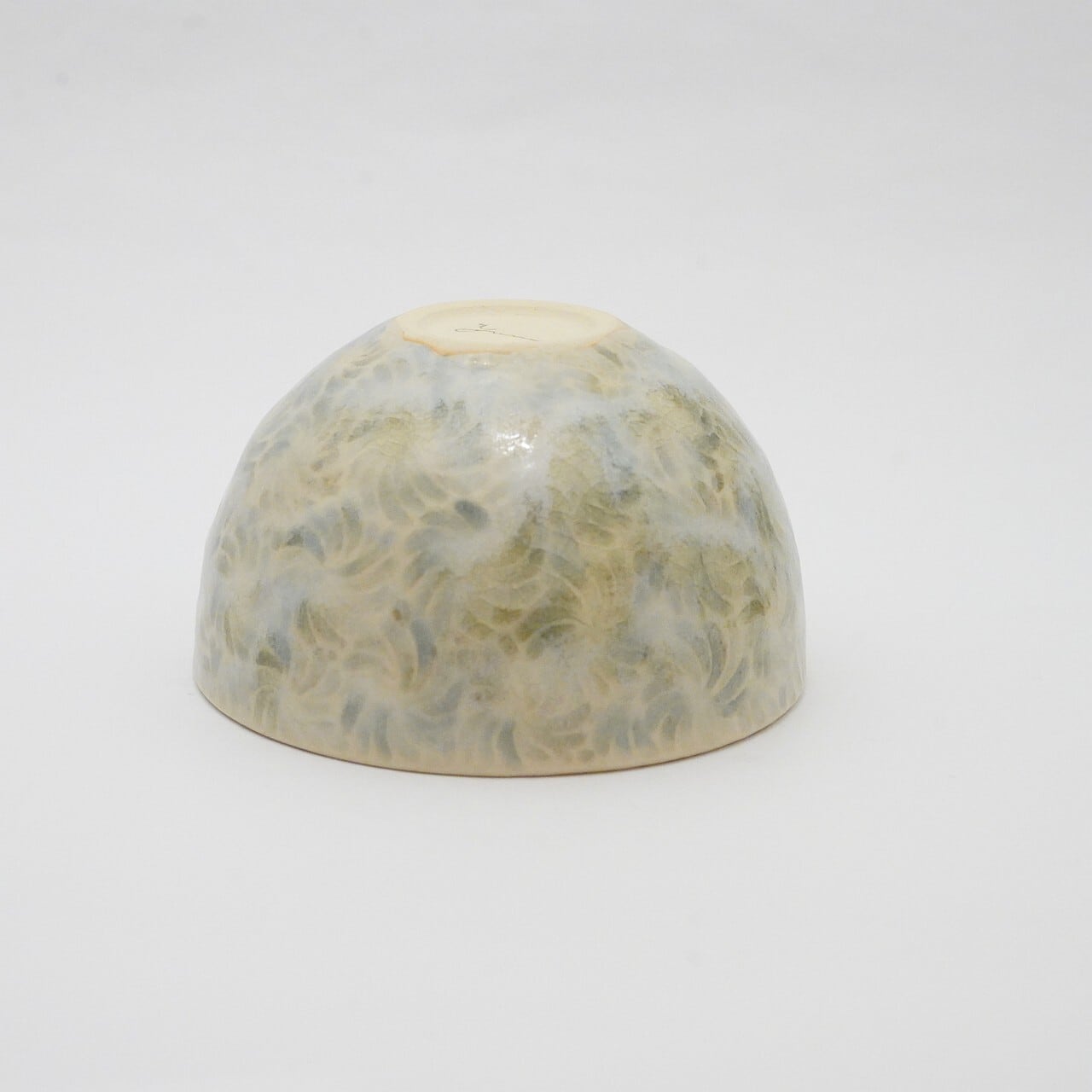 轆轤や石膏型(花器などは石膏型)で成形した生地に、削りの模様を入れ、素焼きし、その後パステルの色を付け、細かい泡が発生する釉薬を掛け焼いていきます。