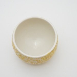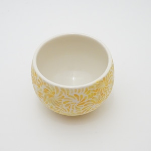 轆轤や石膏型(花器などは石膏型)で成形した生地に、削りの模様を入れ、素焼きし、その後パステルの色を付け、細かい泡が発生する釉薬を掛け焼いていきます。