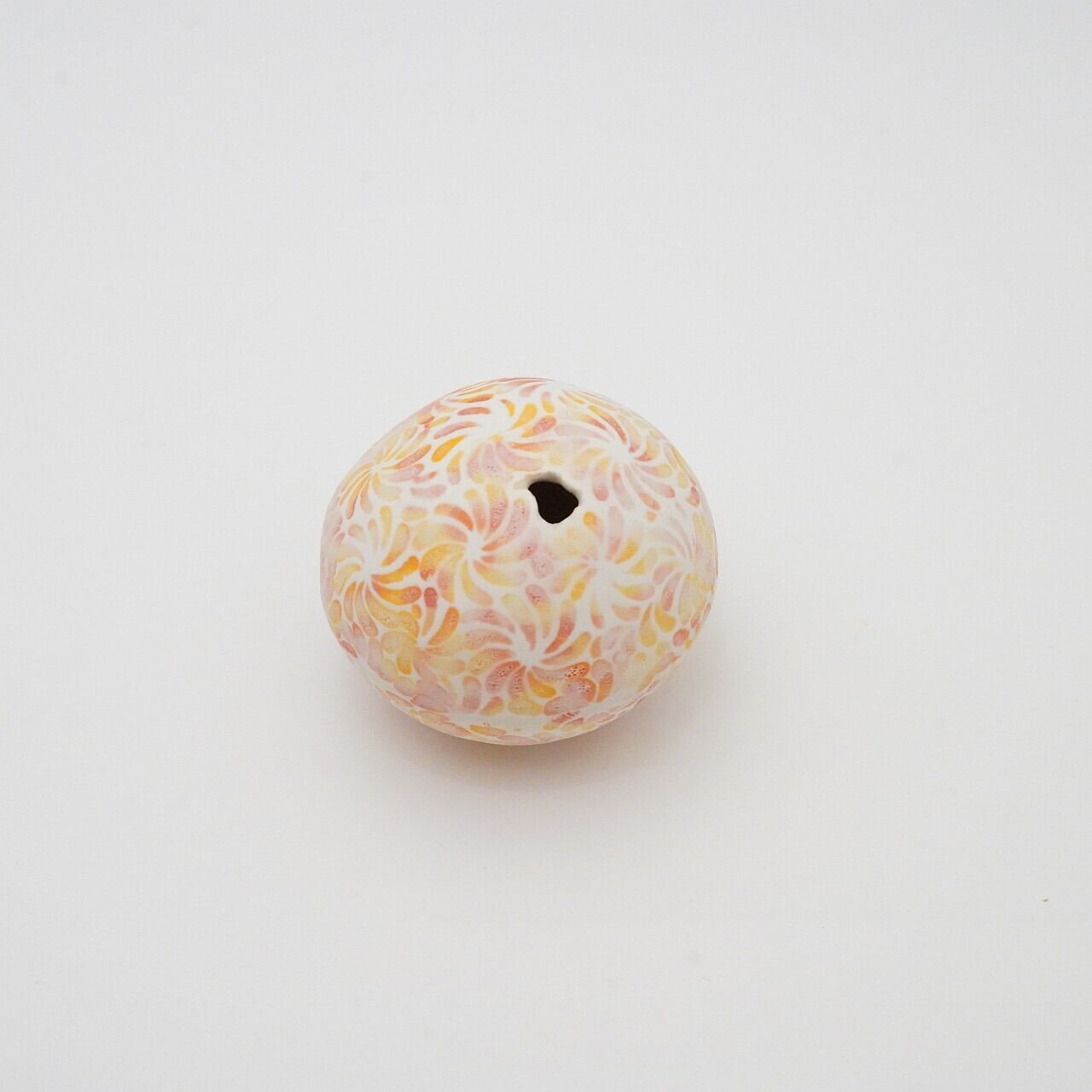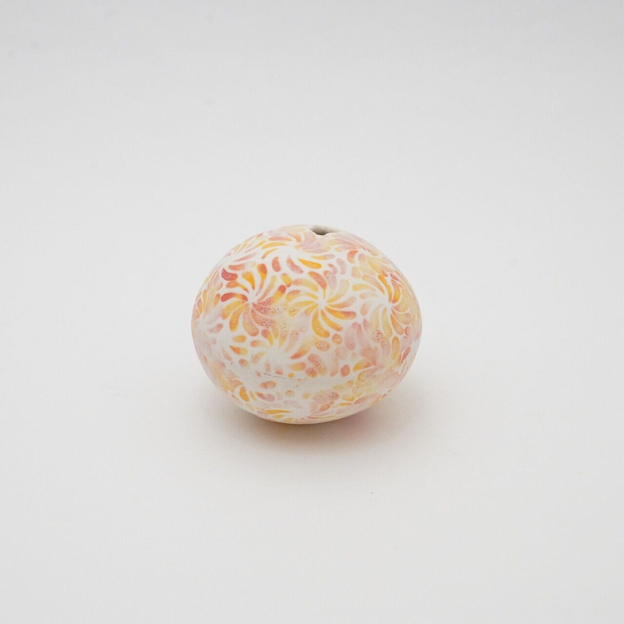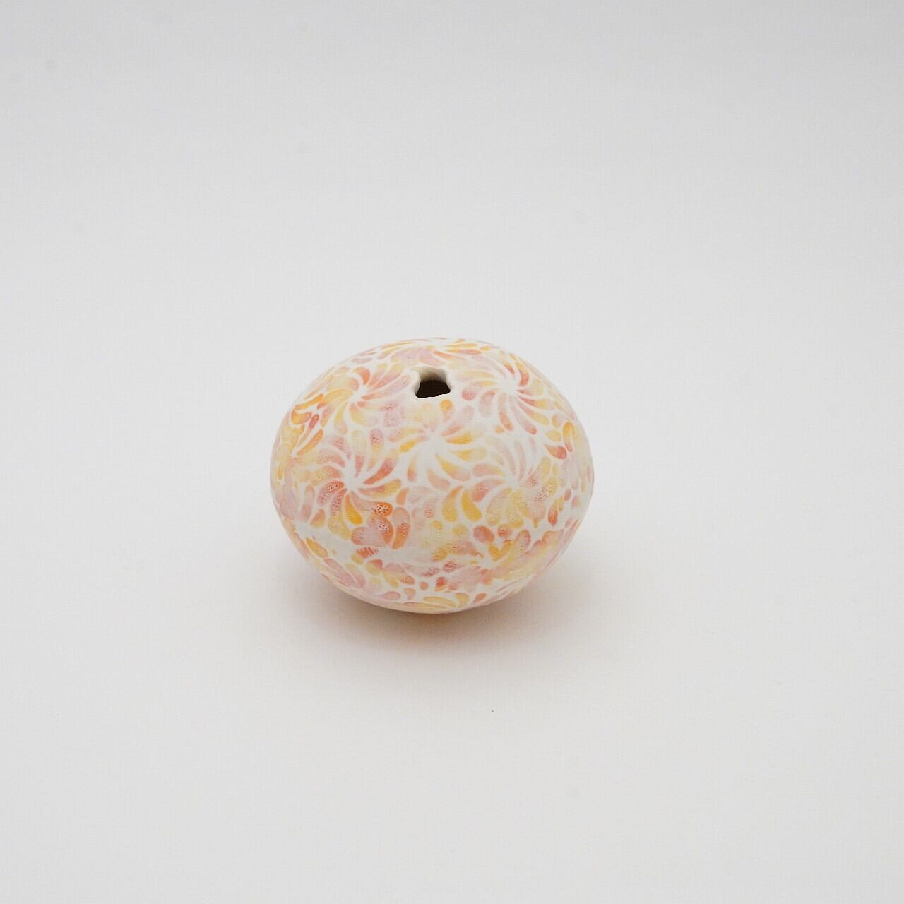 轆轤や石膏型(花器などは石膏型)で成形した生地に、削りの模様を入れ、素焼きし、その後パステルの色を付け、細かい泡が発生する釉薬を掛け焼いていきます。