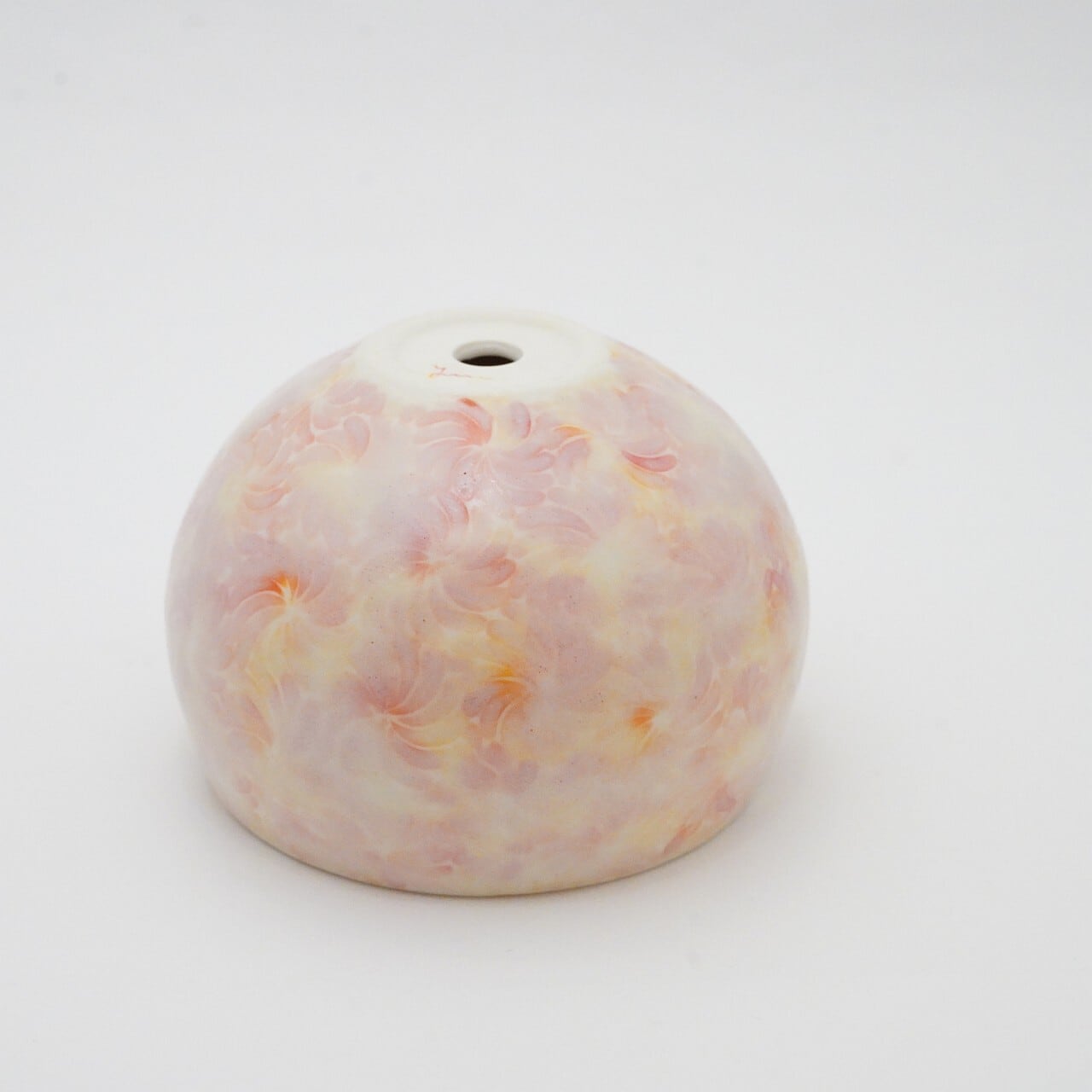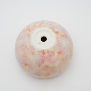 轆轤や石膏型(花器などは石膏型)で成形した生地に、削りの模様を入れ、素焼きし、その後パステルの色を付け、細かい泡が発生する釉薬を掛け焼いていきます。