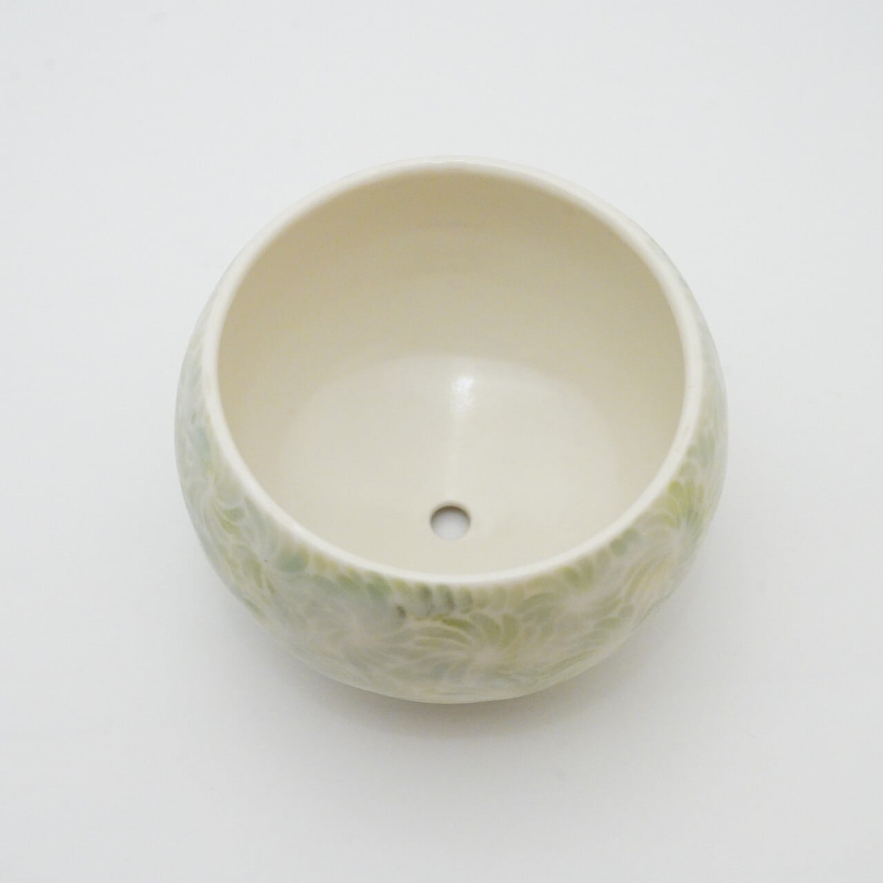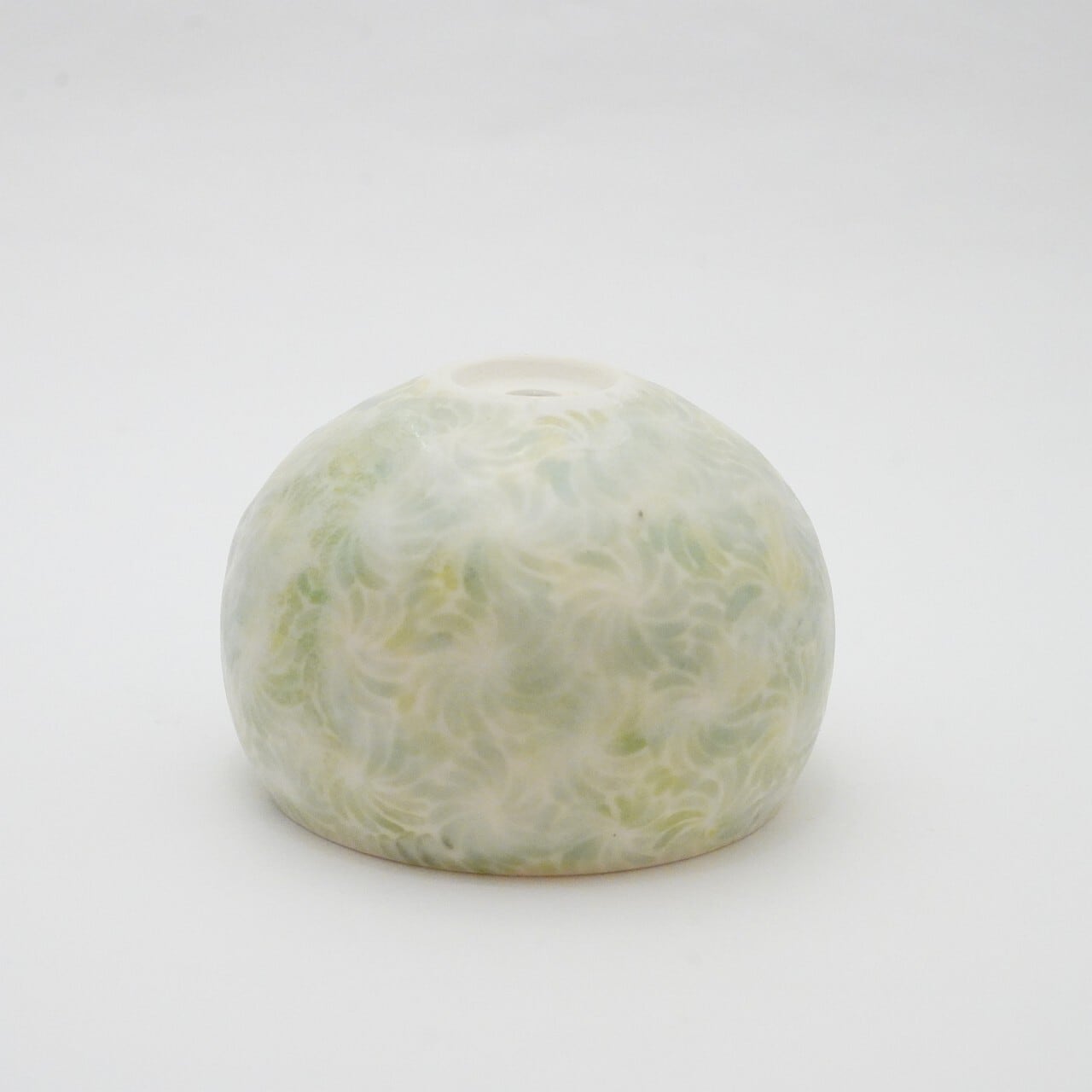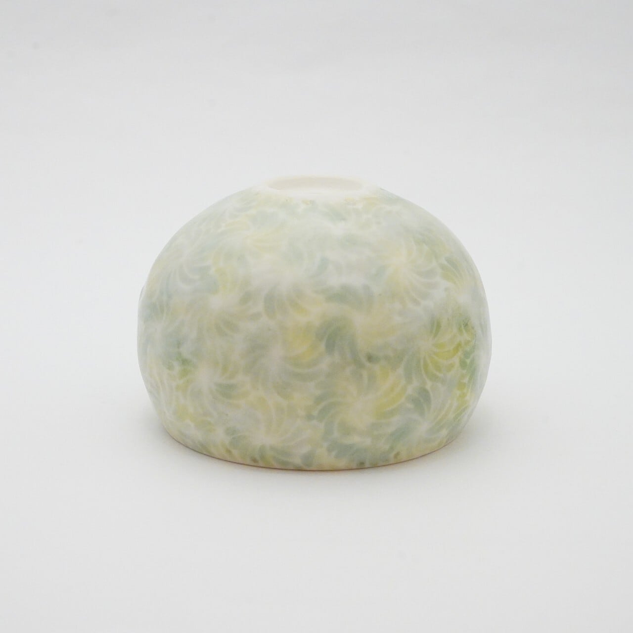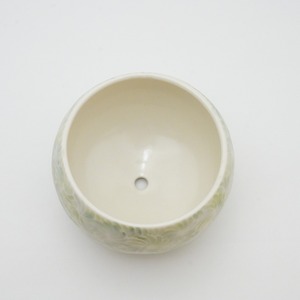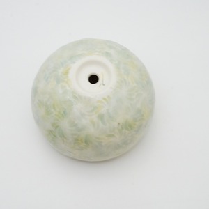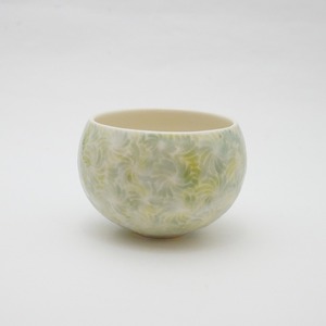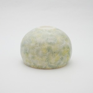 轆轤や石膏型(花器などは石膏型)で成形した生地に、削りの模様を入れ、素焼きし、その後パステルの色を付け、細かい泡が発生する釉薬を掛け焼いていきます。