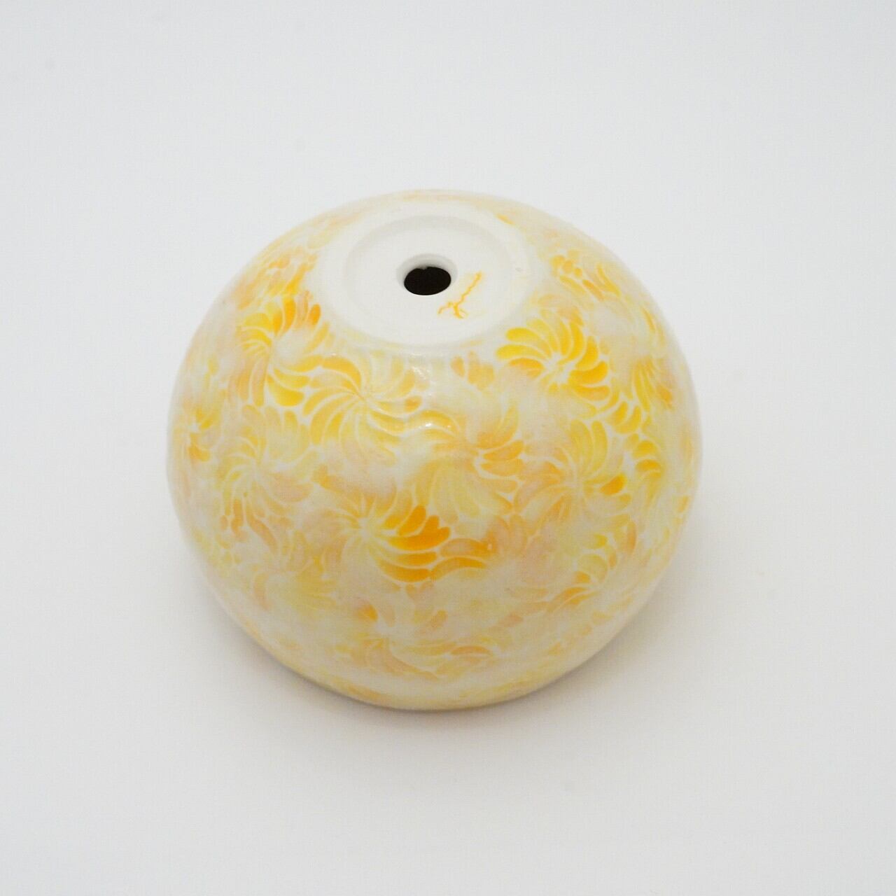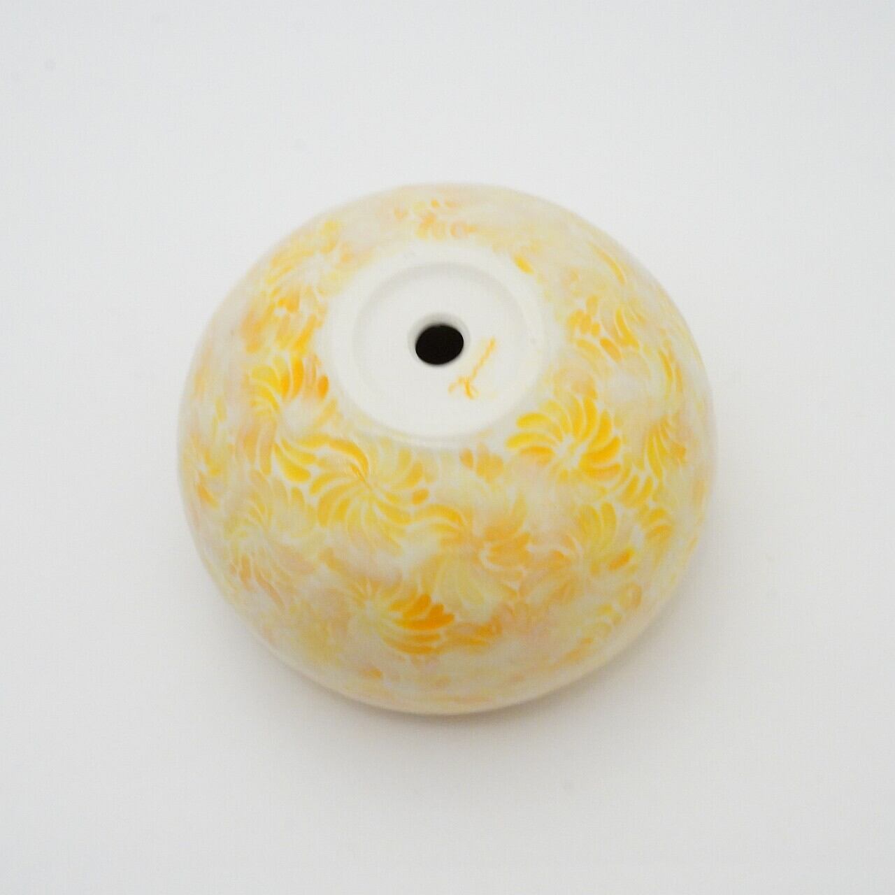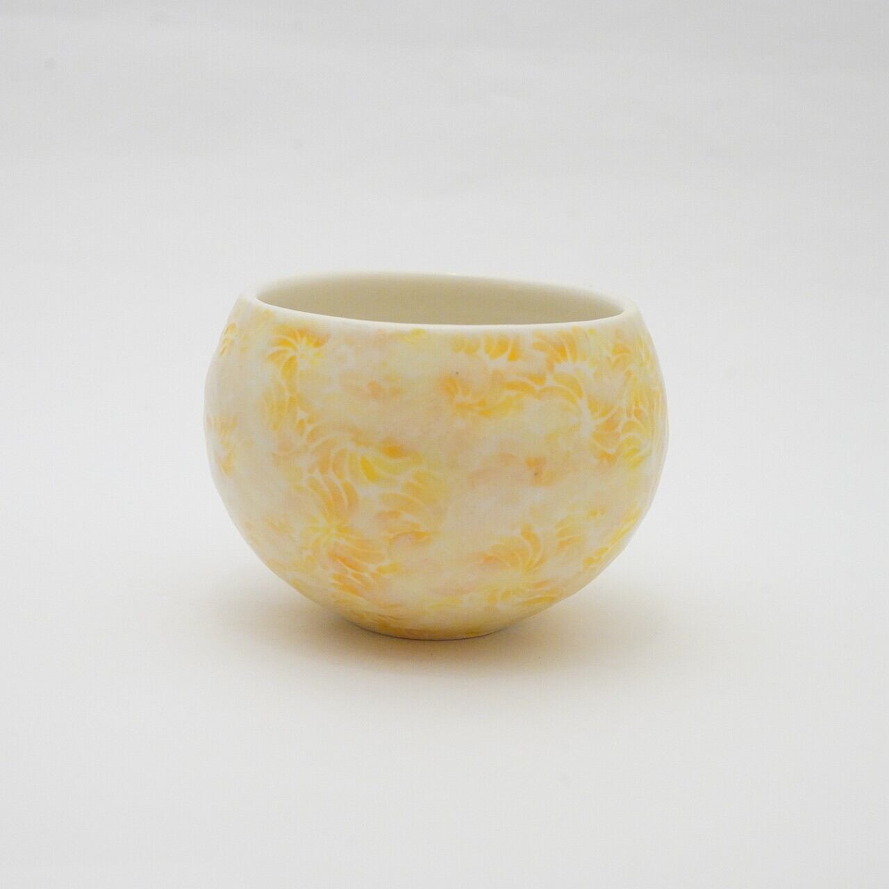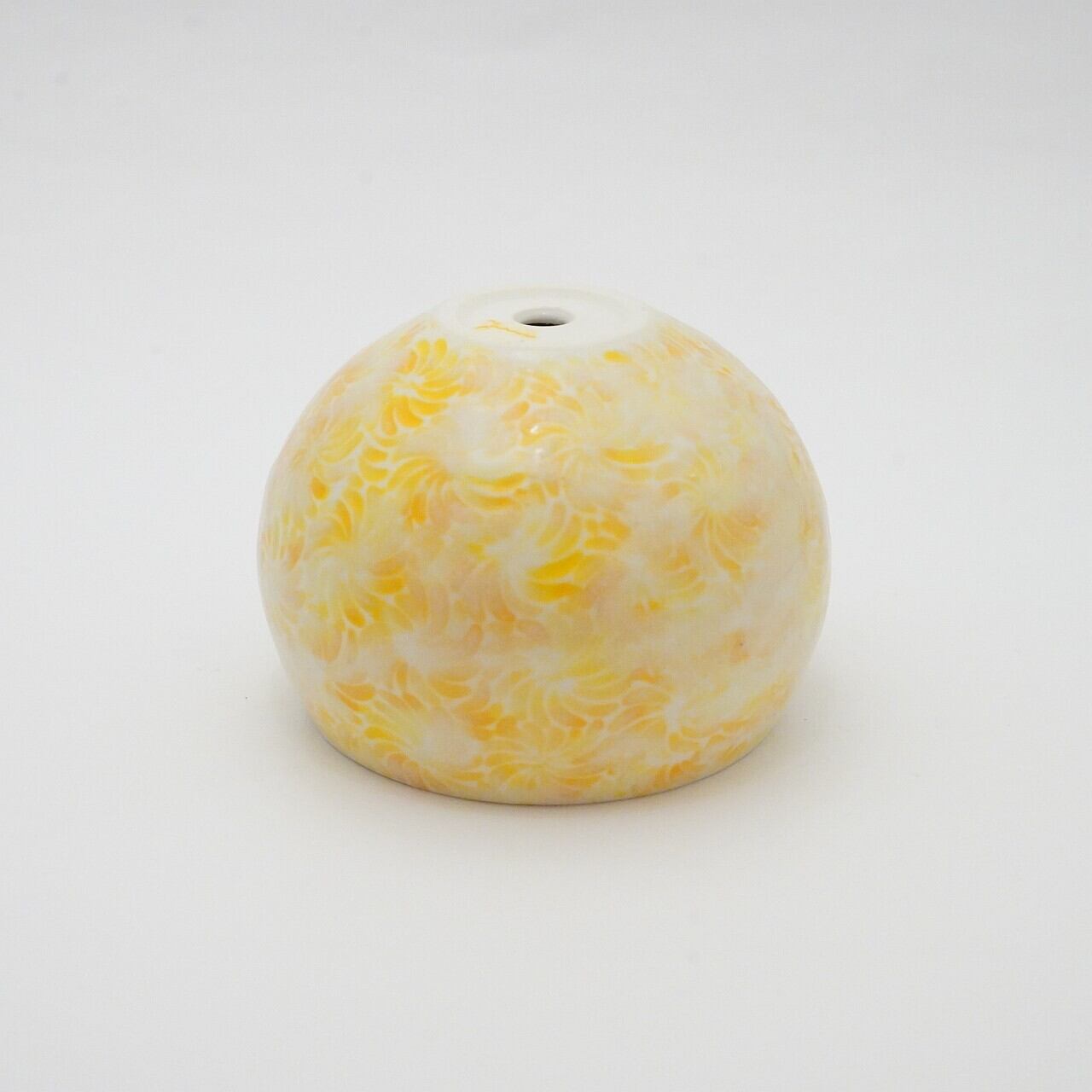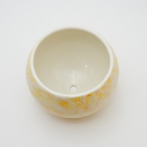 轆轤や石膏型(花器などは石膏型)で成形した生地に、削りの模様を入れ、素焼きし、その後パステルの色を付け、細かい泡が発生する釉薬を掛け焼いていきます。