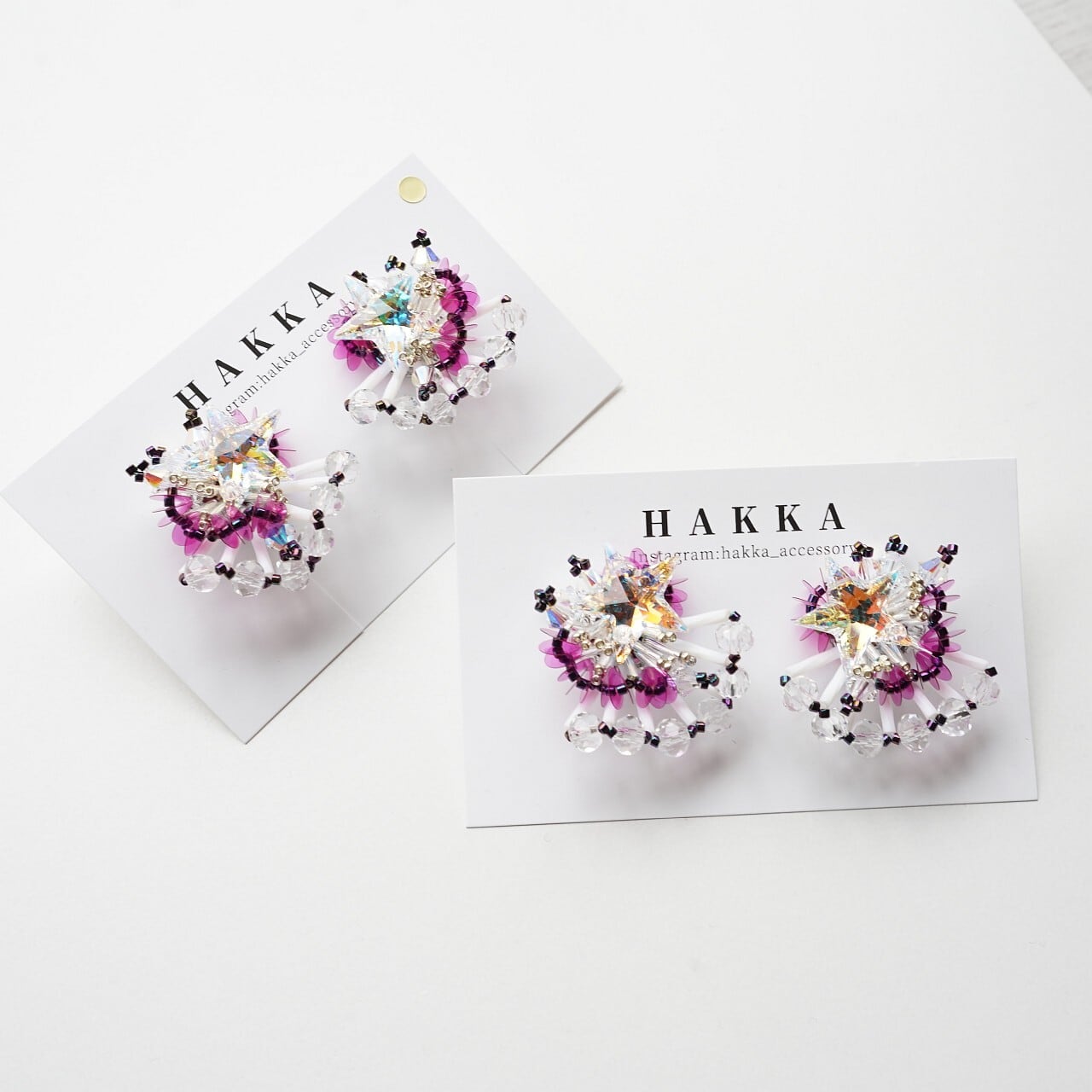 ■大粒の星がキラキラと輝く周りを、スパンコールやビーズで装飾しました